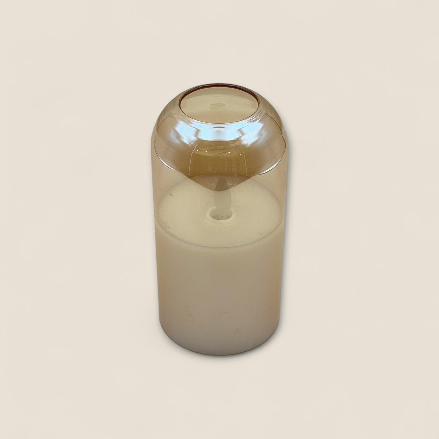 حامل شمعة زجاجي بسيط مع شمعة كريمية