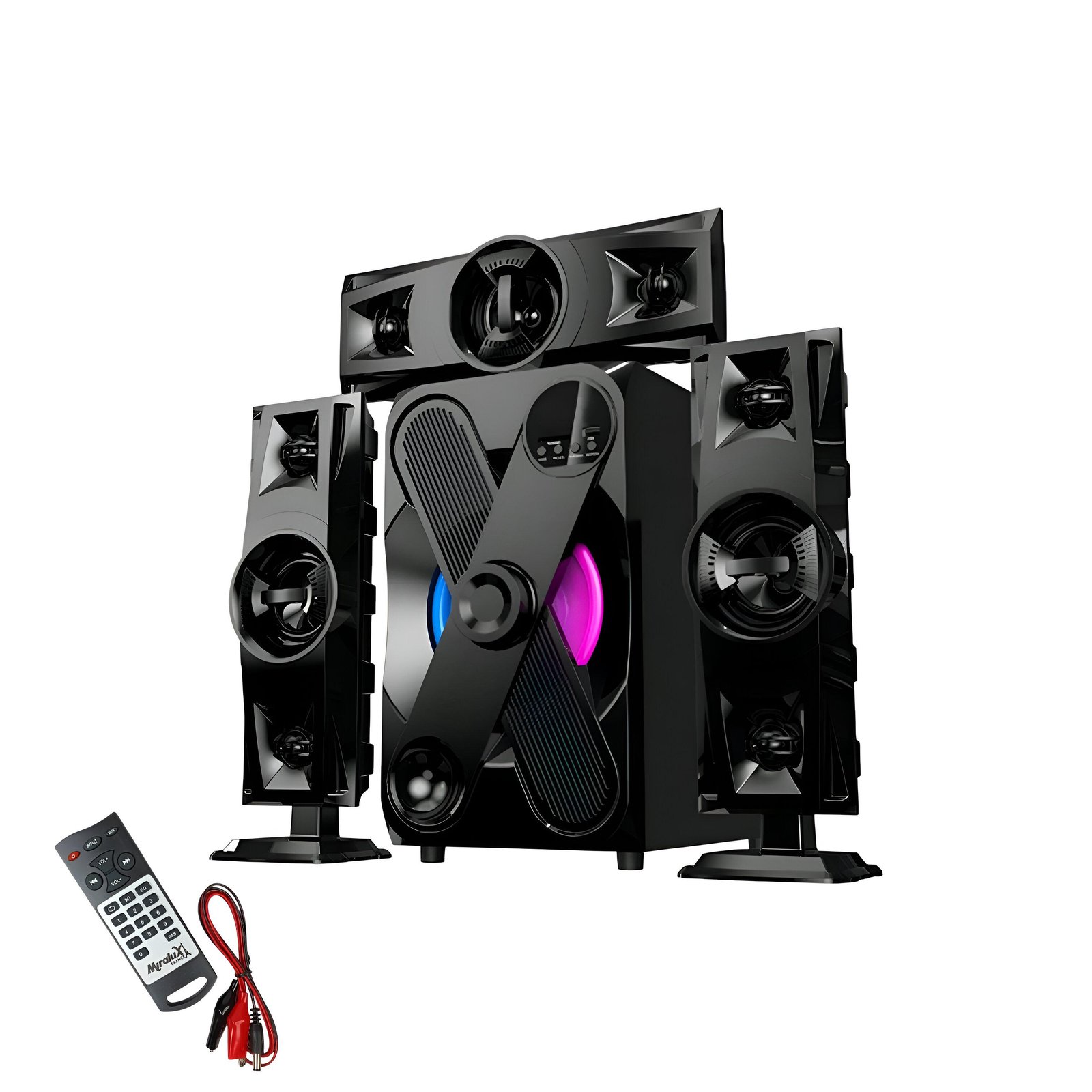 يتميز نظام سماعات بلوتوث ميرالوكس بجهير عميق وصوت واضح، مع إمكانية تشغيل لاسلكي سلس عبر البلوتوث. مثالي لإنشاء سينما منزلية، أو تعزيز تجربة الموسيقى والألعاب في أي مساحة.