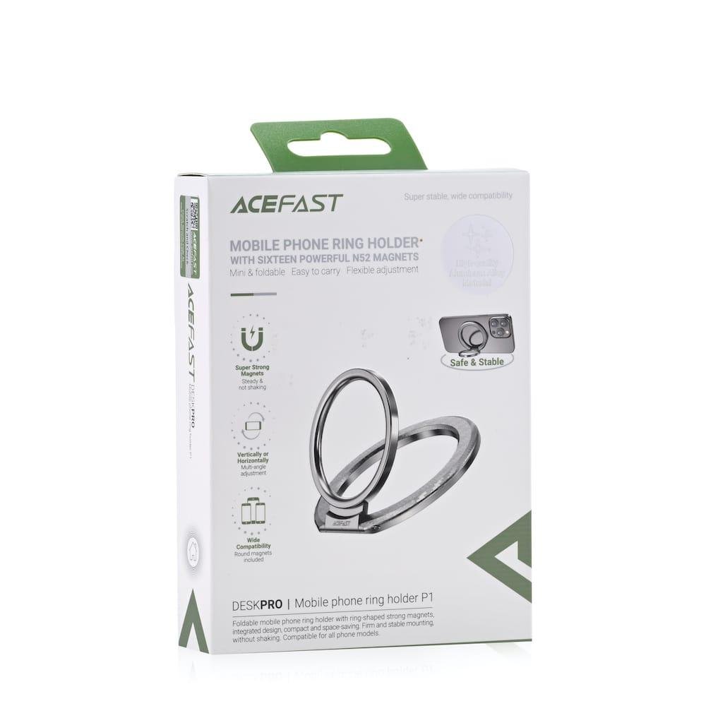 عزز قبضة هاتفك مع حامل خاتم الهاتف المحمول AceFast P1 باللون الفضي. يضمن تصميمه الأنيق والمتين ثباتا آمنا ، ويتضاعف كحامل للمشاهدة بدون استخدام اليدين ، ويدور لتوفير الراحة والأناقة المثلى.