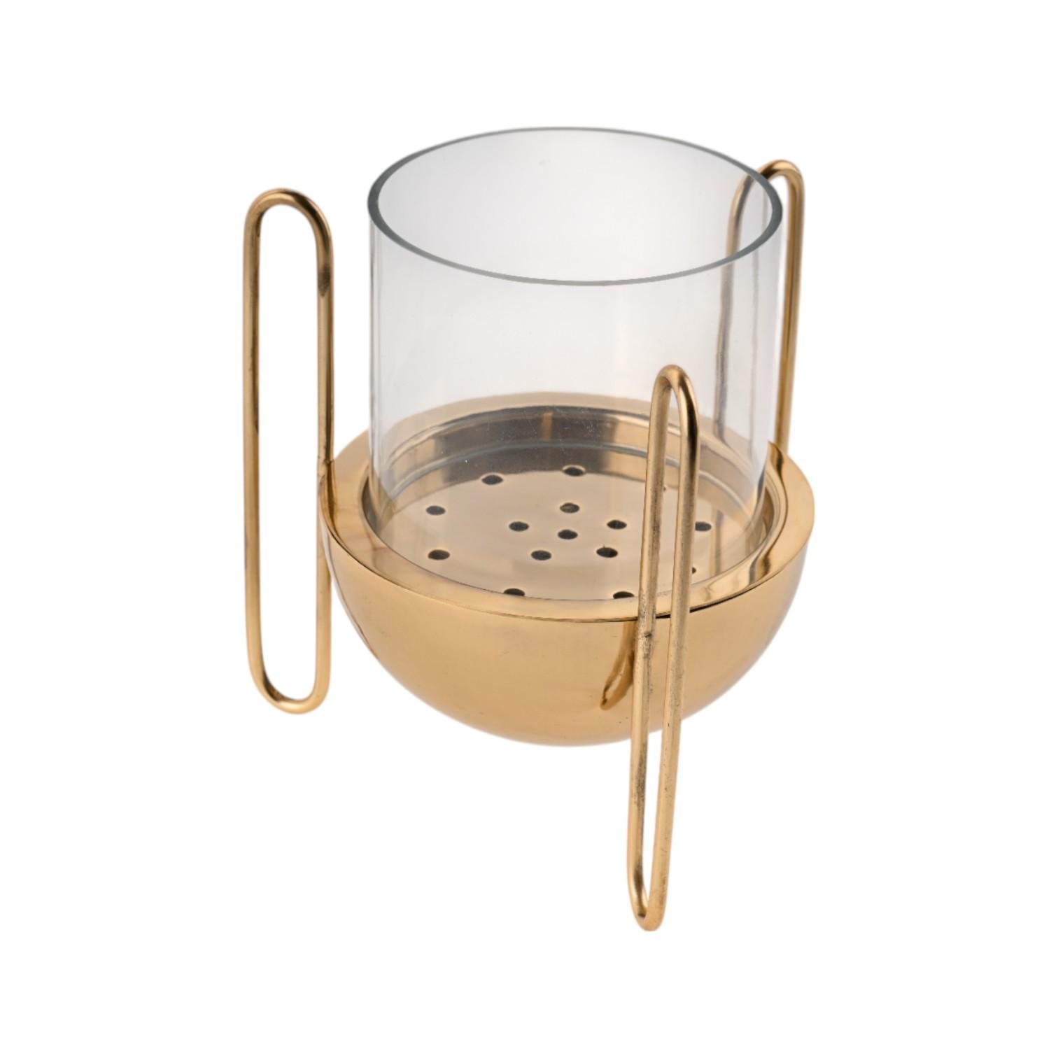 ارتقِ بأجواء منزلك مع مبخرة حديثة بإطار زجاجي. يتميز هذا القطعة الرائعة بتصميم ذهبي أنيق مع إطار زجاجي متين، مما يجعلها مزيجًا مثاليًا من الوظائف والأناقة. تم تصميم المبخرة بفتحات متعددة لضمان توزيع متساوي لرائحة البخور، مما يخلق جوًا هادئًا وجذابًا في أي غرفة.