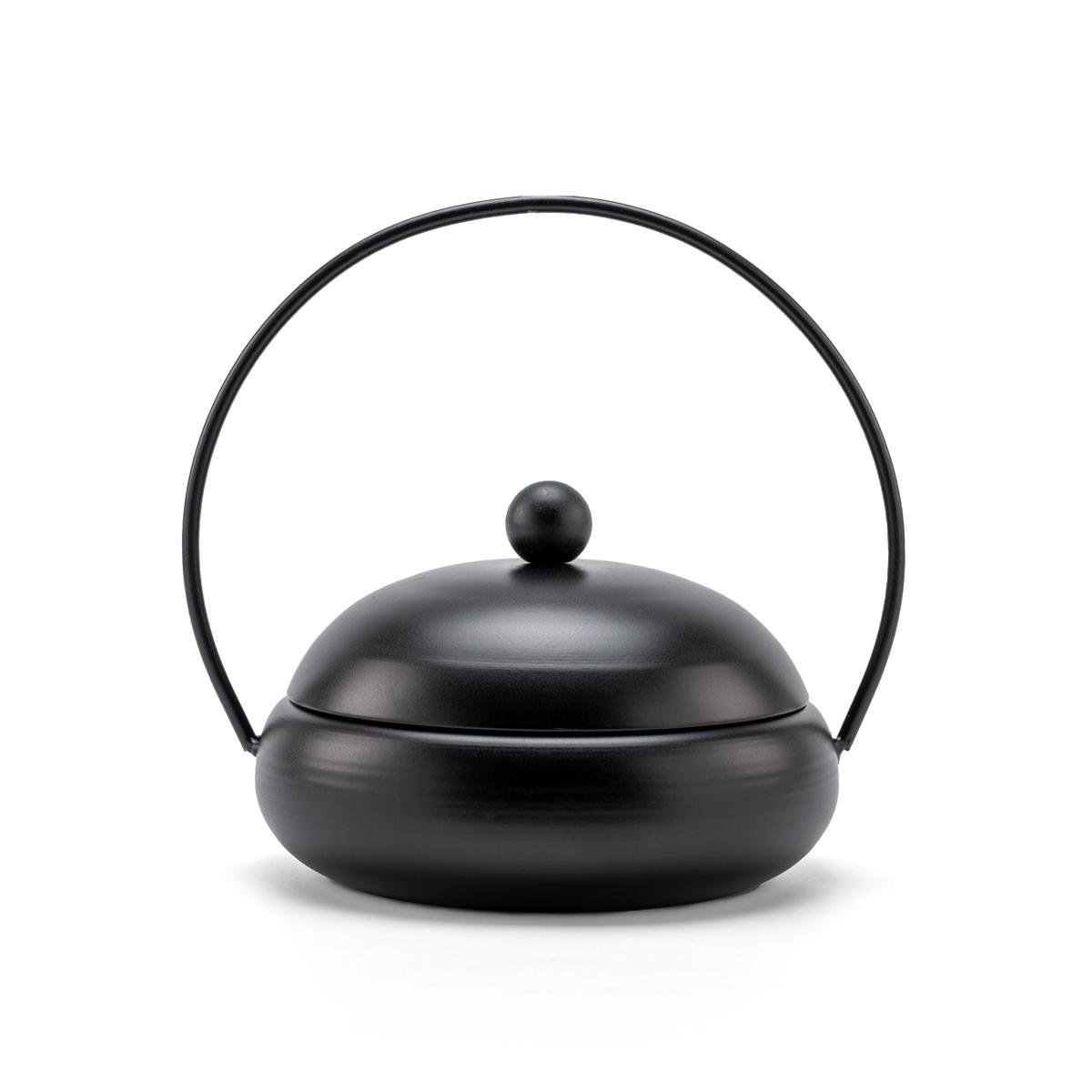 يتميز حامل البخور الأسود الأنيق بتصميم عصري مع غطاء مستدير ومقبض مريح لسهولة النقل. مصنوع من مواد عالية الجودة، يضمن المتانة ويضيف لمسة أنيقة لأي ديكور منزلي.