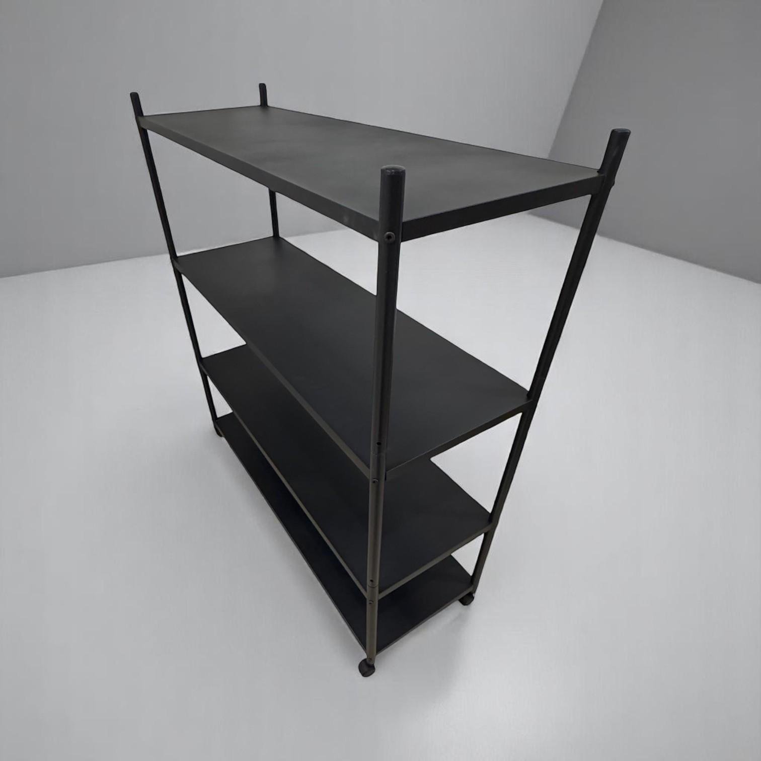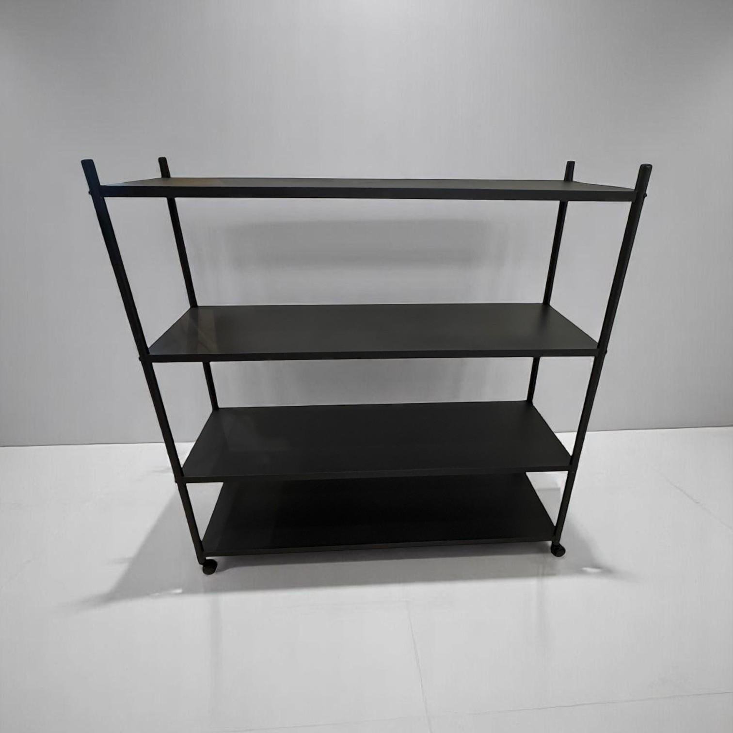 حولي الفوضى إلى ترتيب مثالي رف التخزين العصري هذا هو الحل الأمثل لتنظيم مساحتك بلمسة أنيقة مع رف تخزين معدني عصري ذو 4 رفوف بعجلات