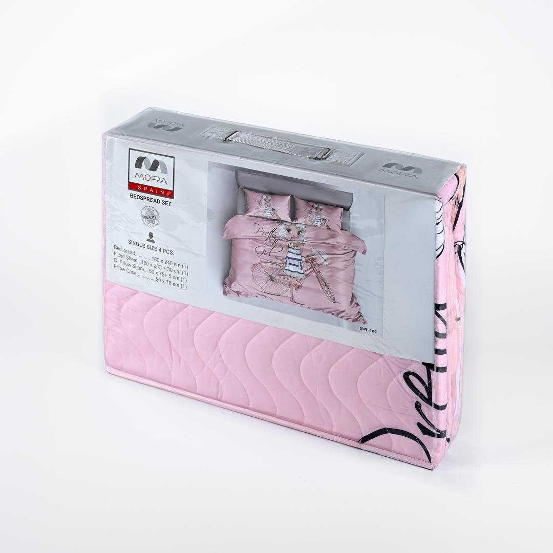 1.غطاء سرير - 180 × 240 سم 1. ملاءة سرير - 120 × 203 + 30 سم 1. وسادة - 50 × 75 + 5 سم 1. غطاء وسادة - 50 × 75 سم - وردي وأبيض