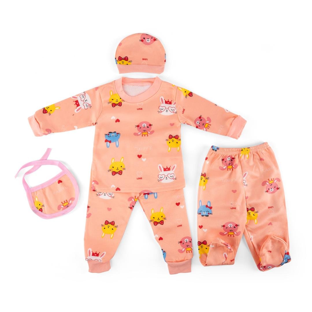 لفي طفلك الصغير بالدفء واللطافة مع طقم ملابس دافئة للمولود الجديد. يتضمن هذا الطقم الرائع قميصًا بأكمام طويلة، وسروالًا متناسقًا، وقبعة دافئة، ومريلة، جميعها مزينة بطبعات حيوانات جذابة ستجعل طفلك يبدو أكثر جمالًا. مصنوع من قماش ناعم وعالي الجودة، يضمن هذا الطقم راحة ودفء طفلك خلال الأشهر الباردة. يوفر الخصر والأساور المرنة ملاءمة مريحة، بينما تضيف الألوان الزاهية والتصاميم المرحة لمسة من المرح إلى خزانة طفلك.