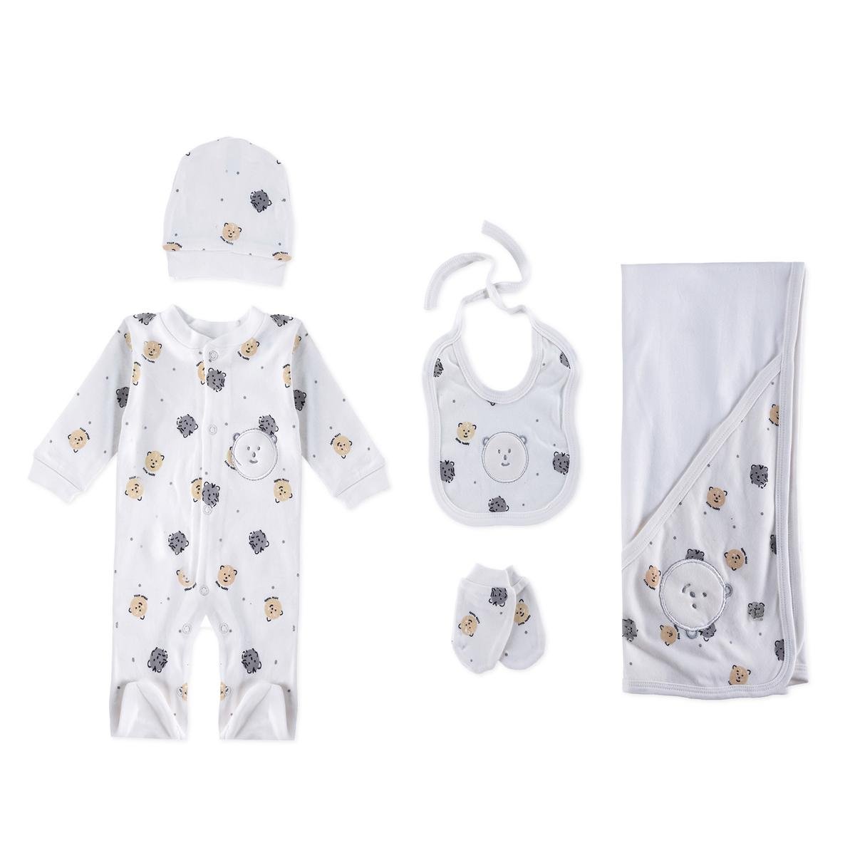 هذه المجموعة المكونة من 10 قطع هي الحل الأمثل لملابس طفلك في الأسابيع الأولى مصنوعة من قطن ناعم وخفيف، مصممة لحماية بشرة الطفل الحساسة مع تفاصيل تسهل الارتداء مثل الياقات المرنة والأزرار السريعة. تشمل المجموعة بذلات، بيجامات، قبعات، وقفازات—كل ما يحتاجه المولود الجديد