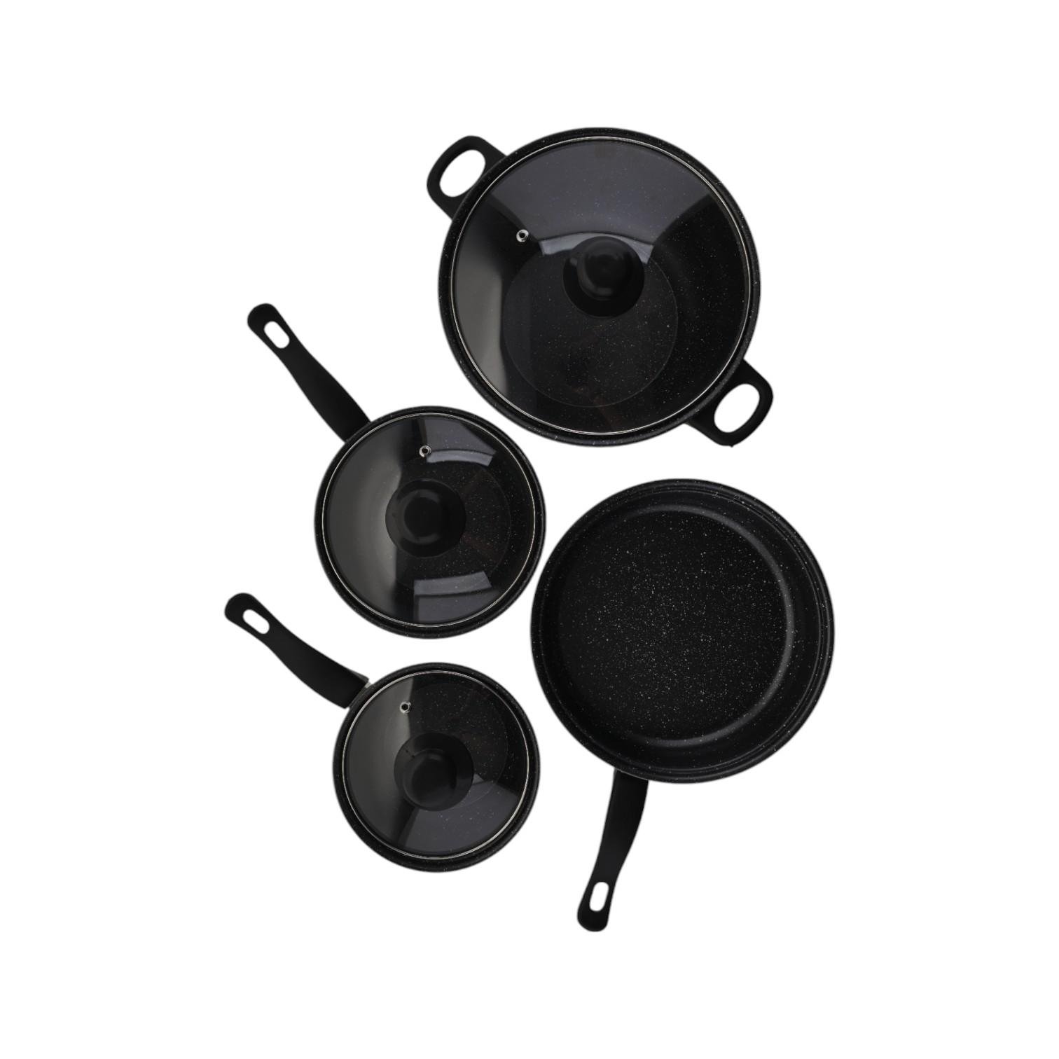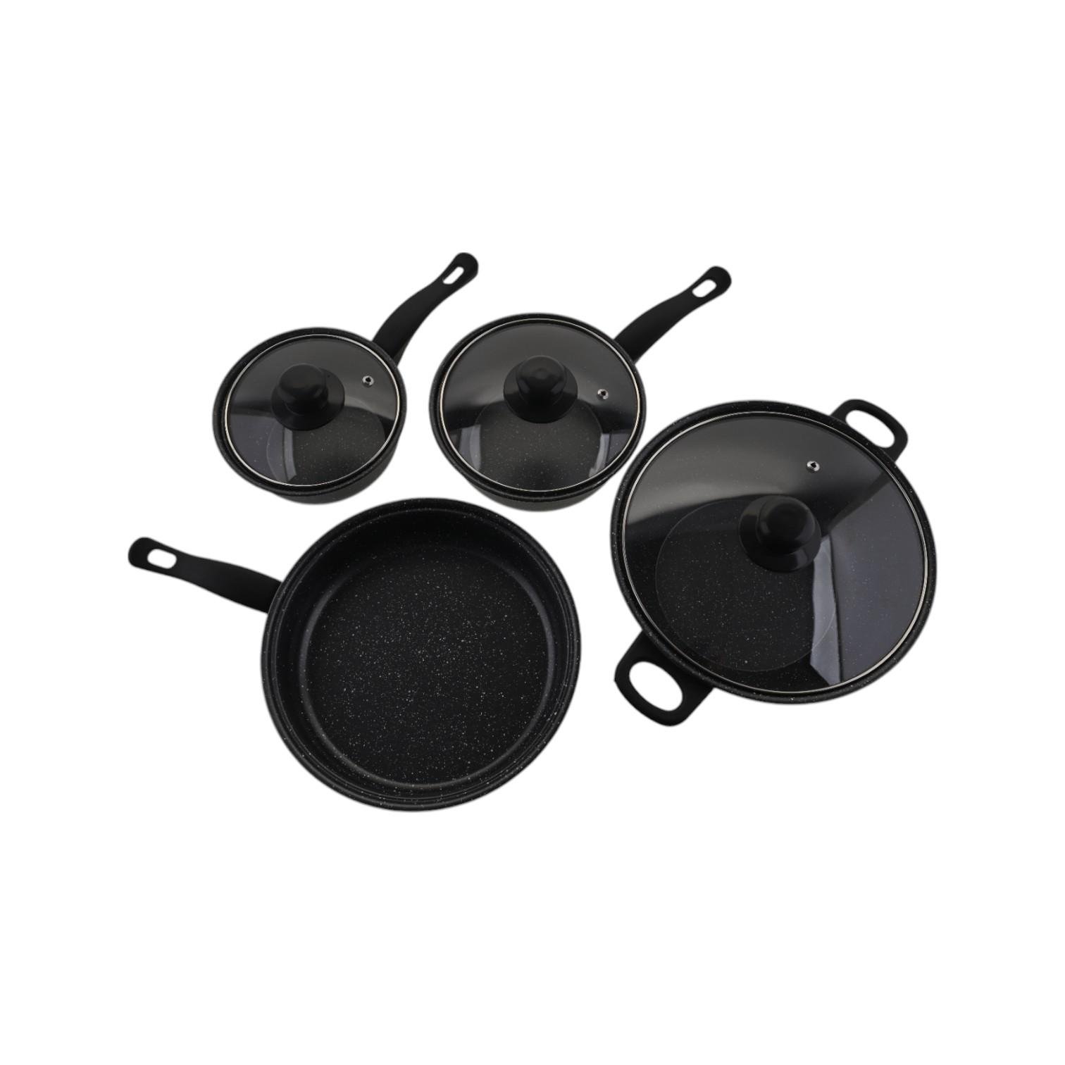 اطبخي بسهولة وراحة مع طقم أدوات الطهي المانع للالتصاق المكوّن من 7 قطع! مثالي للطبخ اليومي، يوفر لك أداء عاليا ونظافة أسهل بفضل الطلاء غير اللاصق. سواء كنت تطهو وجبة سريعة أو تحضر طعامًا لعائلتك، هذا الطقم هو شريكك المثالي في المطبخ.