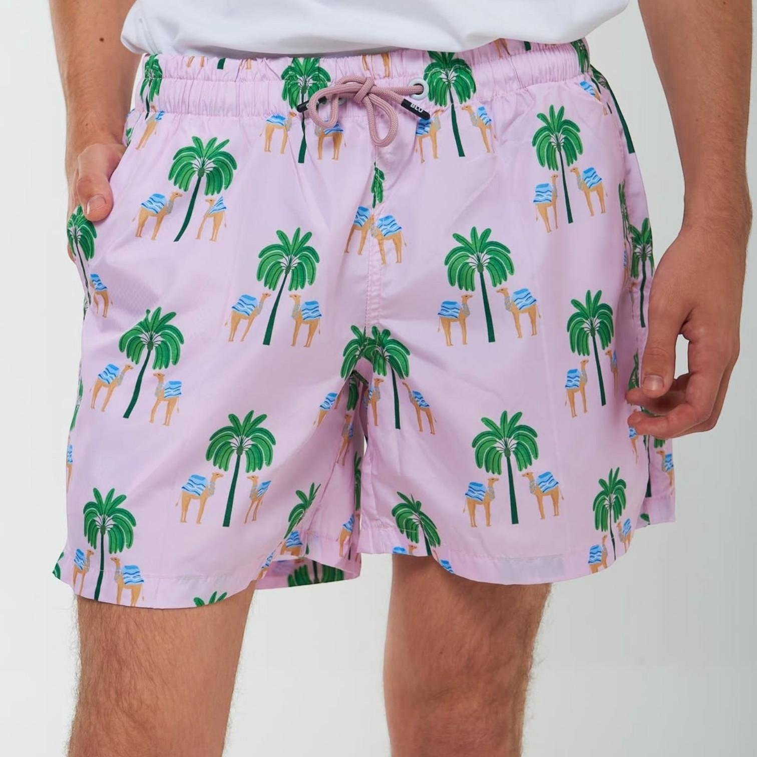 أضف لمسة من الأجواء الاستوائية والجمال الصحراوي إلى إطلالتك الصيفية مع سروال السباحة OASIS. مصنوع من قماش سريع الجفاف يسمح بحرية الحركة، مما يجعله الخيار المثالي لقضاء يوم على الشاطئ أو بجوار المسبح. يتميز بطبعات النخيل والجِمال لإطلالة فريدة تجذب الأنظار.