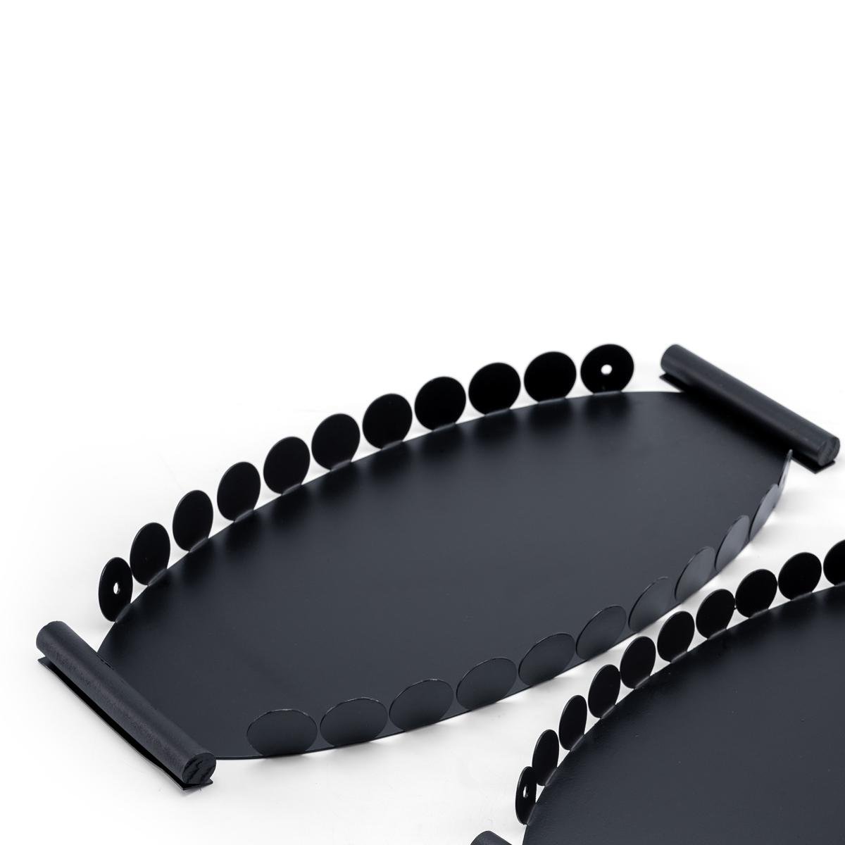 صواني التقديم المعدنية البيضاوية ذات الحواف المقطوعة بشكل دائري. تم تصميم هذه الصواني الأنيقة والعصرية لتجمع بين الاناقه والجماليات الحديثة، مما يجعلها الإضافة المثالية لمطبخك أو طاولة الطعام أو بار القهوة. مصنوعة من معدن عالي الجودة، هذه الصواني ليست متينة فحسب، بل أيضًا خفيفة الوزن، مما يضمن سهولة الاستخدام والتعامل لفترة طويلة.