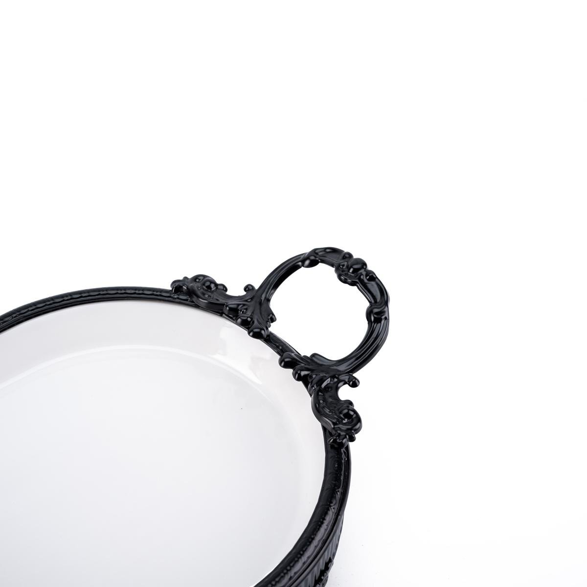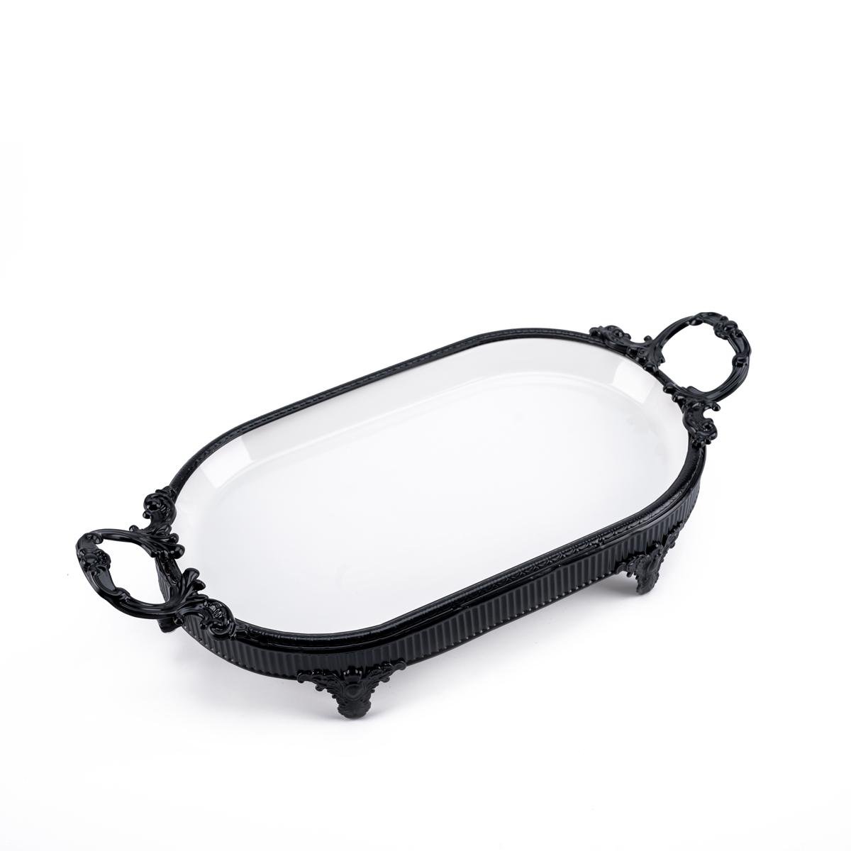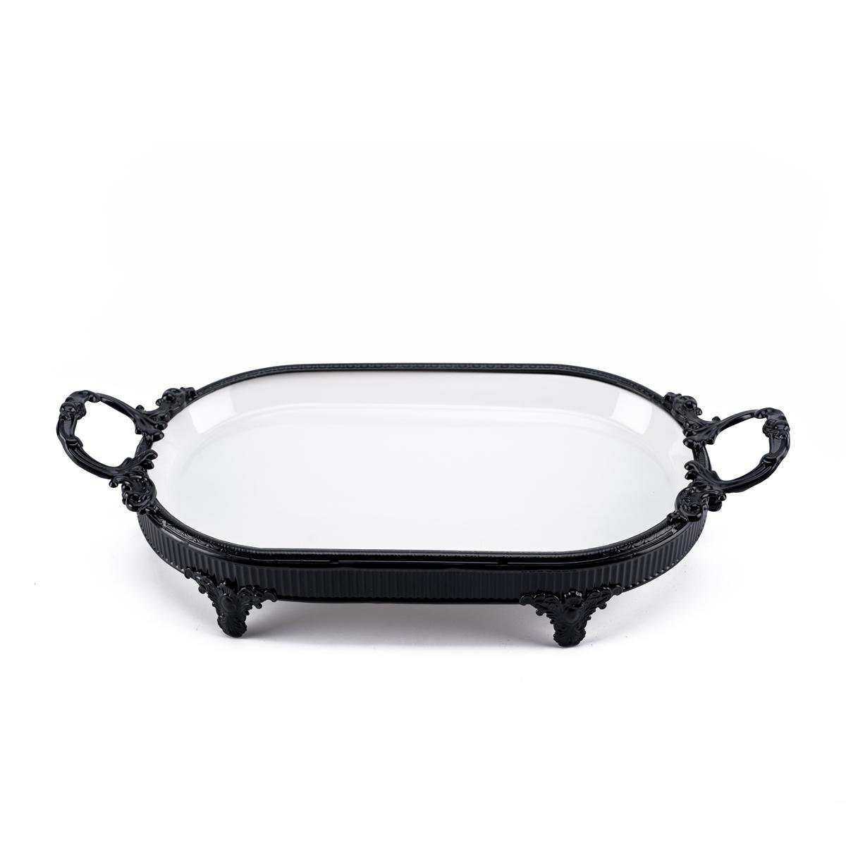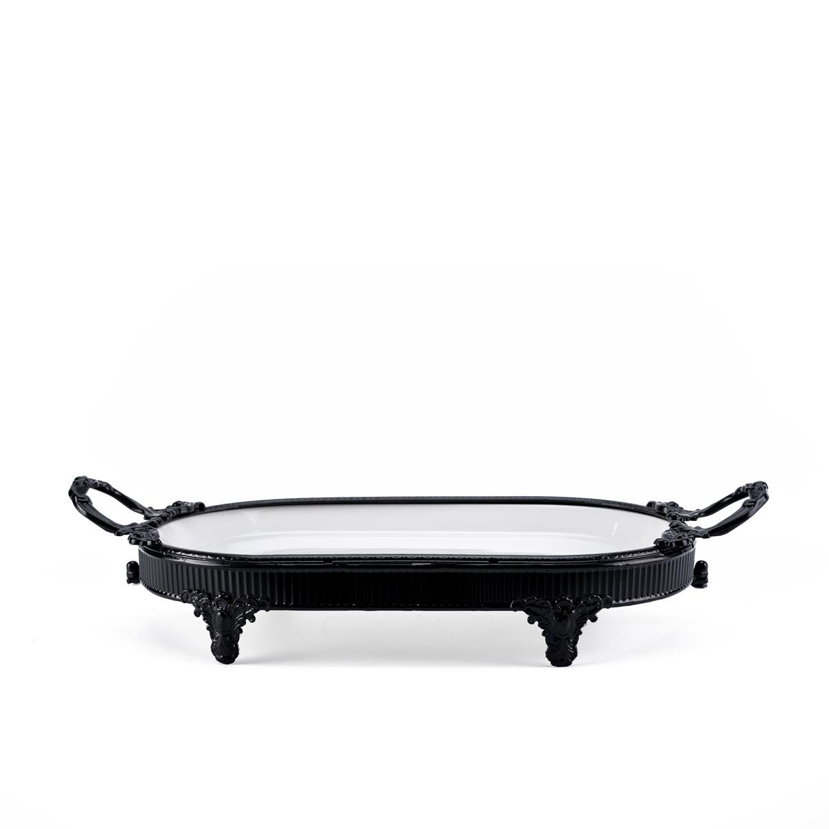 أضفي لمسة من الأناقة والعملية إلى طاولتك مع صينية التقديم البيضاوية ذات القاعدة الحديدية باللون الأسود المطفي.