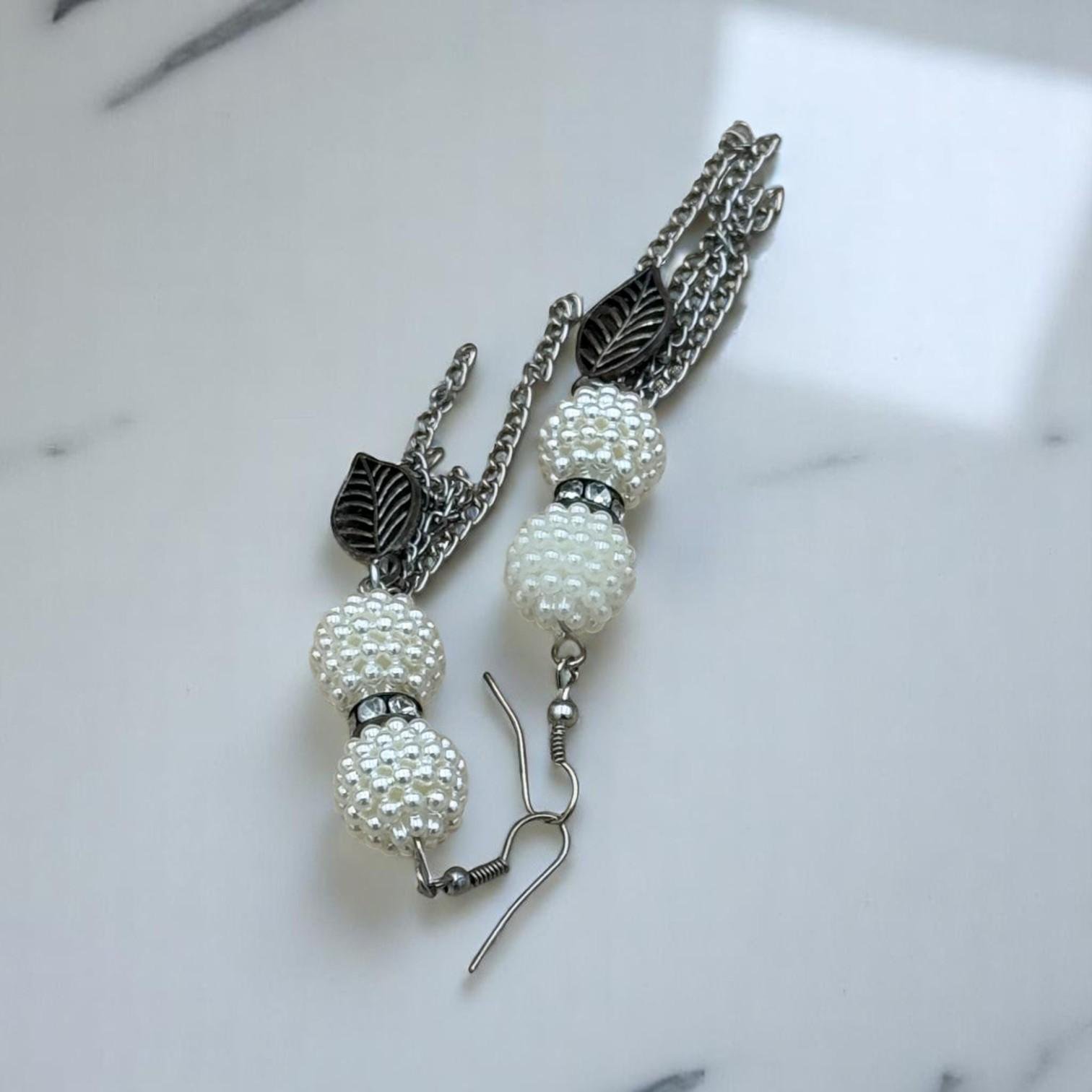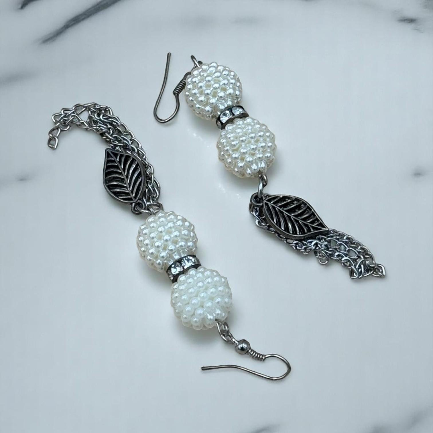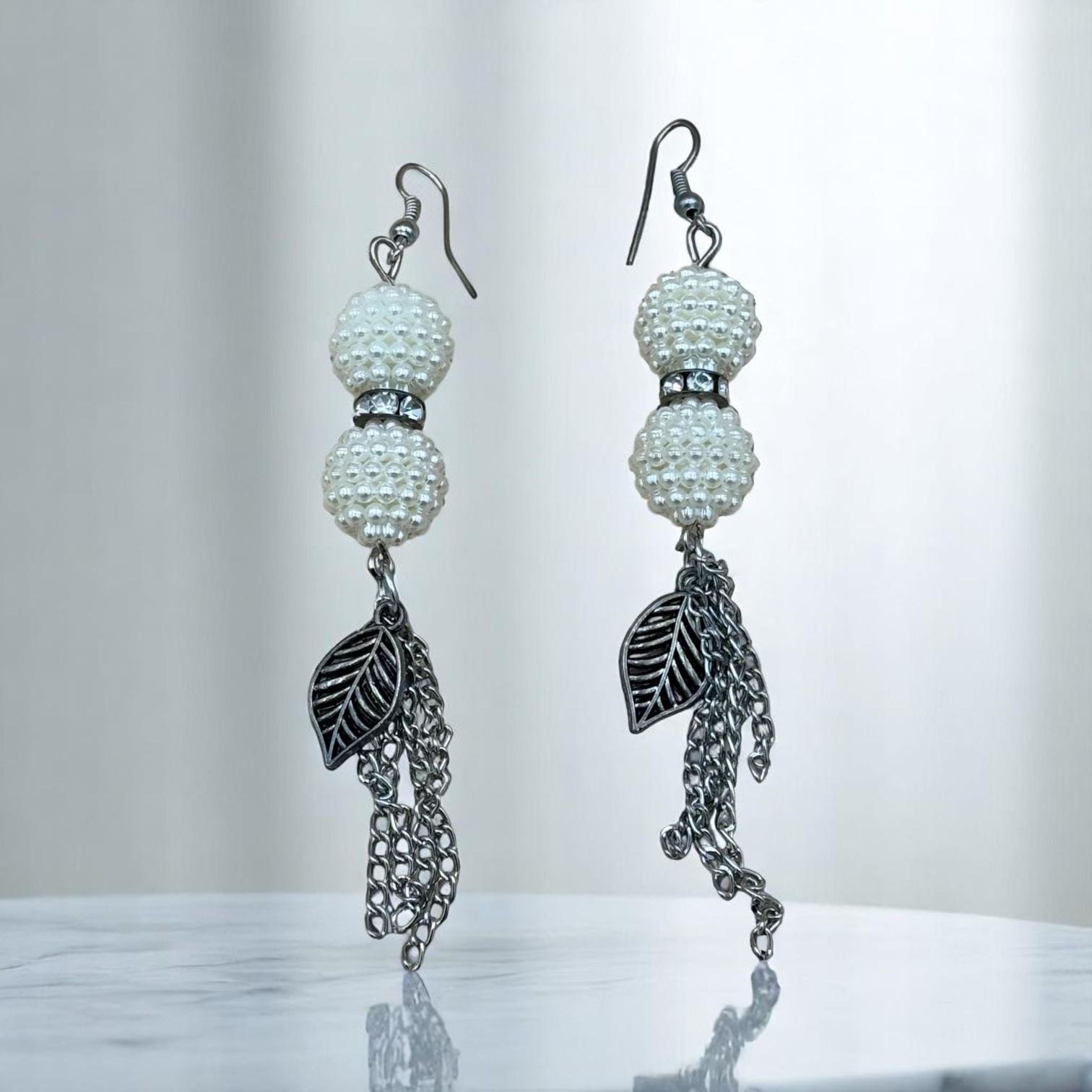 تميزي بإطلالة تخطف الأنظار مع أقراط تجمع بين الرقي والبساطة مع أقراط متدلية بتصميم لؤلؤي مع أوراق الشجر.