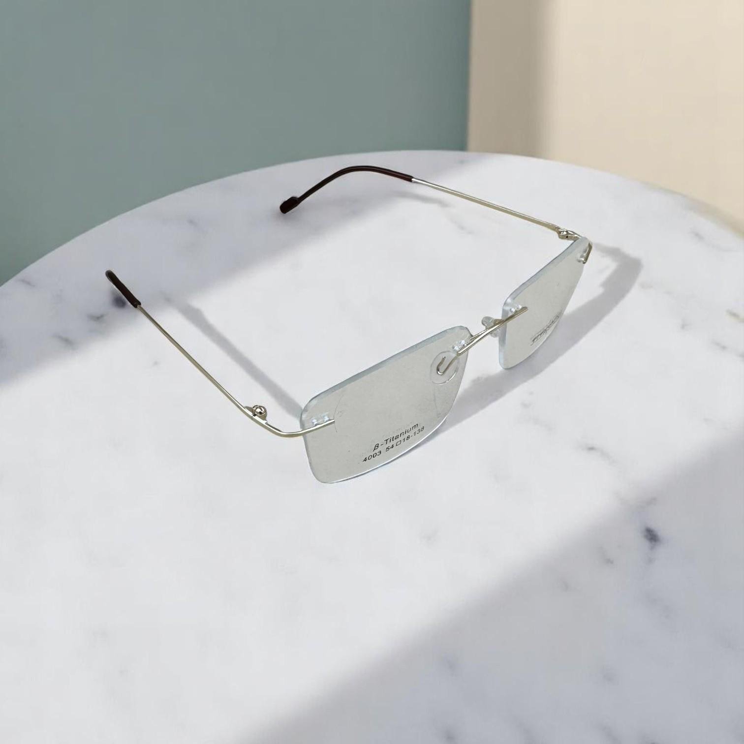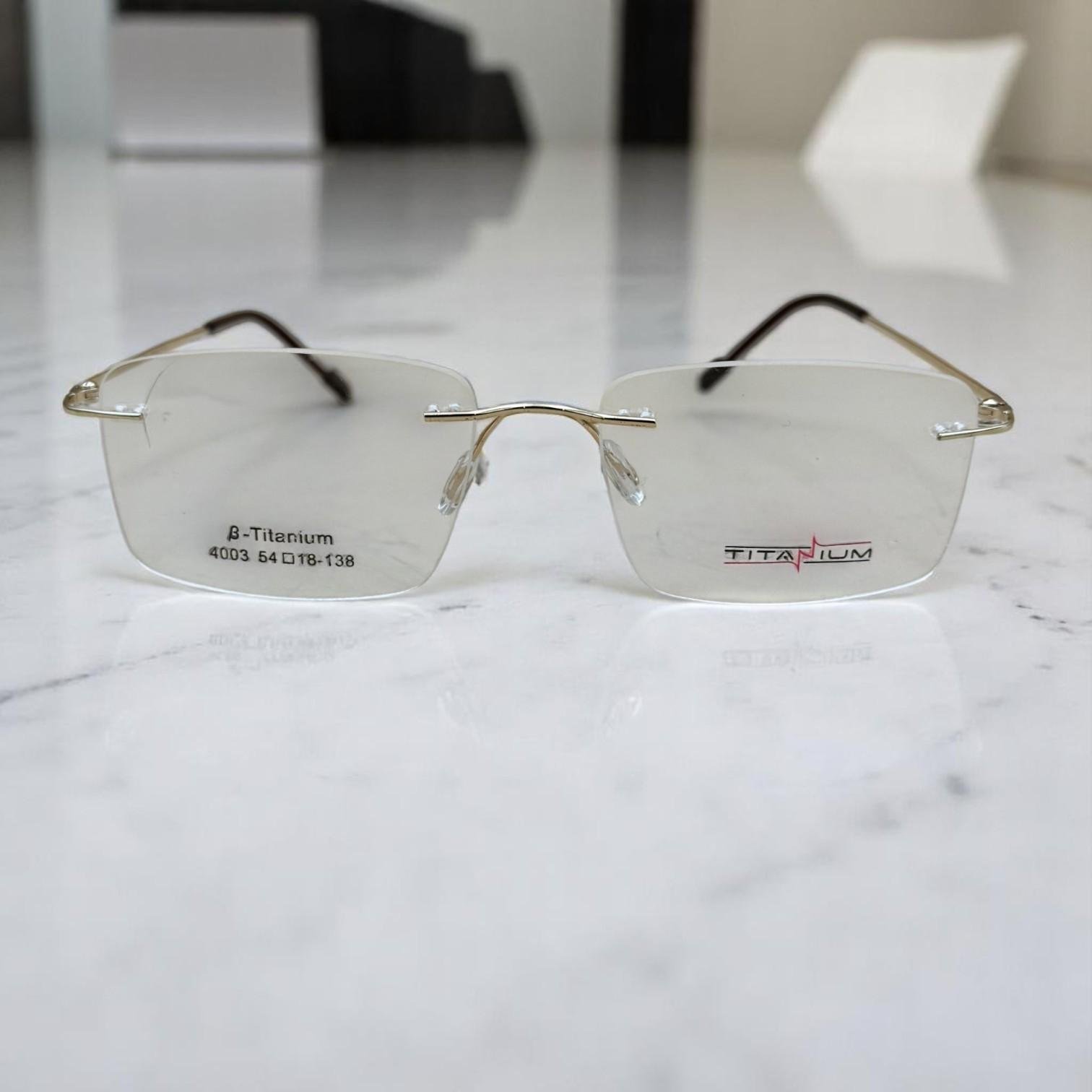 تأتي هذه النظارات مصنوعة من التيتانيوم عالي الجودة مع لمسة نهائية ذهبية شامبانيا مصقولة وتصميم أنيق بدون إطار، لتمنحك أناقة استثنائية وراحة فائقة طوال اليوم.