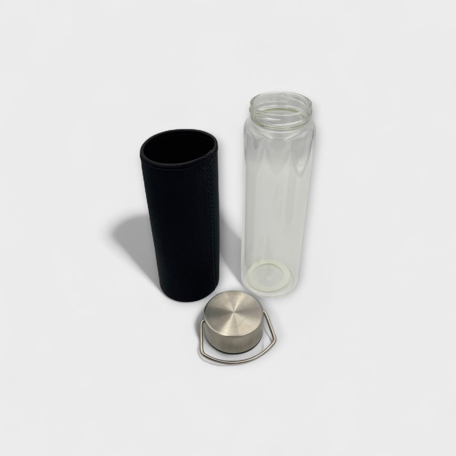 حتسِ مشروبك المفضل أينما كنت بفضل كوبنا الزجاجي القوي مع غطاء محكم وحافظة مريحة تحمي يديك