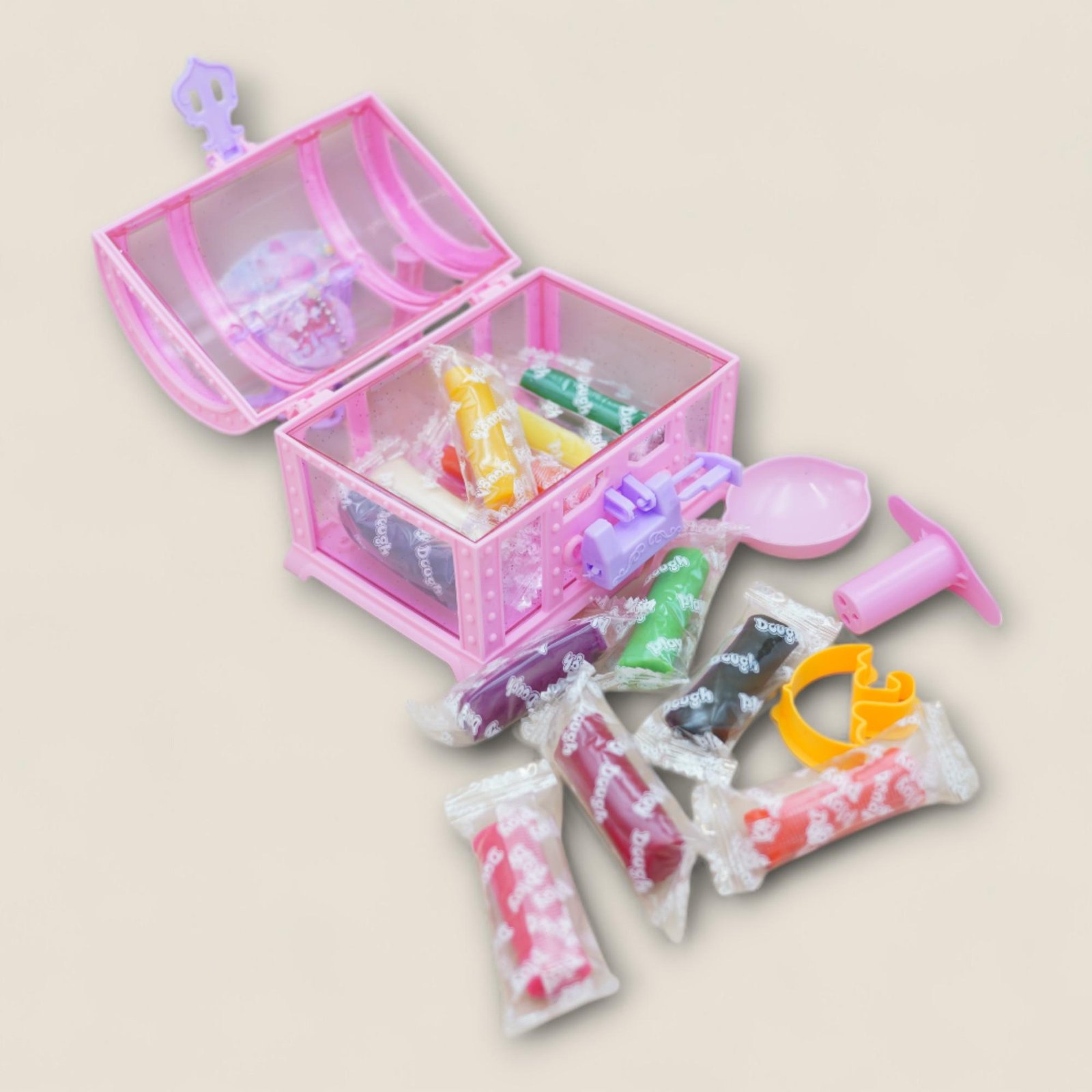 افتحي الباب للإبداع مع مجموعة عجينة اللعب صندوق كنز الأميرة الساحرة! هذه المجموعة الممتعة تحتوي على 12 عبوة عجين ملونة آمنة للأطفال، بالإضافة إلى قوالب وأدوات تشكيل لصنع التاج، الجواهر، وغيرها من الأشكال الخيالية. الصندوق المتين يحفظ كل القطع منظمة، مما يجعله مثالياً للسفر أو اللعب في المنزل. العجينة ناعمة، سهلة التشكيل، وتحفز خيال الصغار لساعات من المرح