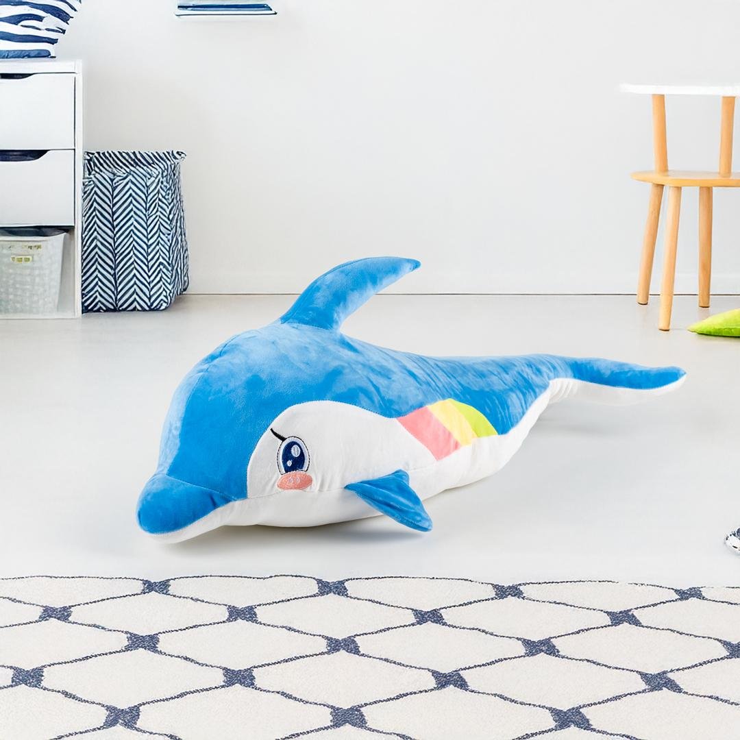 اجعلي وقت استحمام طفلك أكثر لحظات اليوم متعة مع دمية دولفين إسفنجية قوس قزح – 80 سم