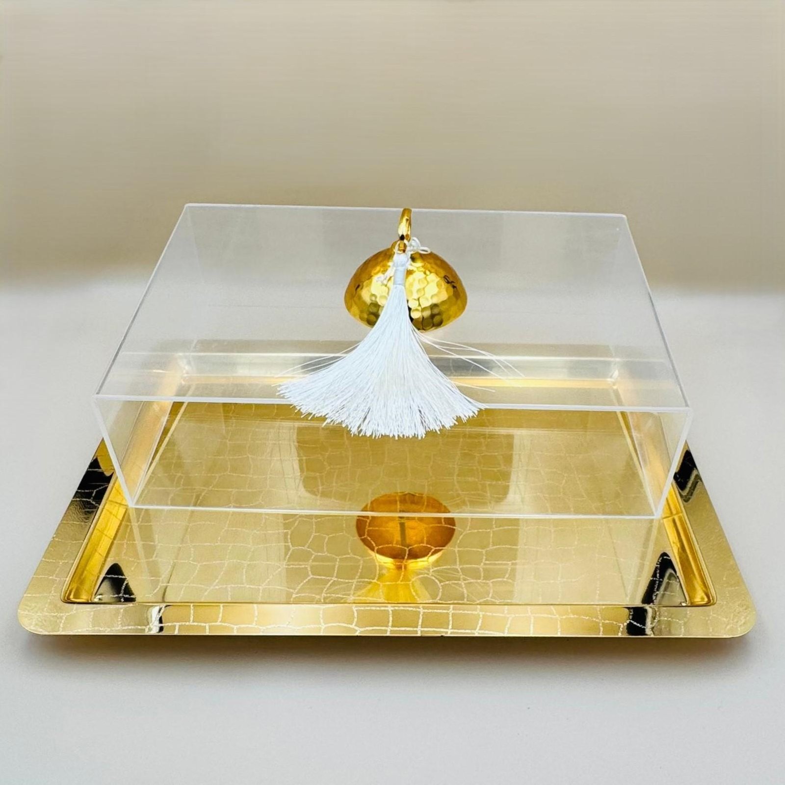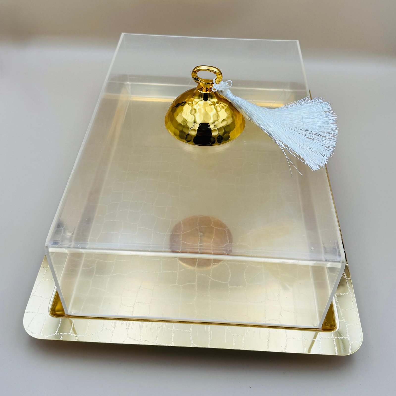 أضيفي لمسة من الفخامة إلى مائدتك مع هذا الصحن الذهبي الأنيق مع صحن حلويات مستطيل من الأكريليك الذهبي