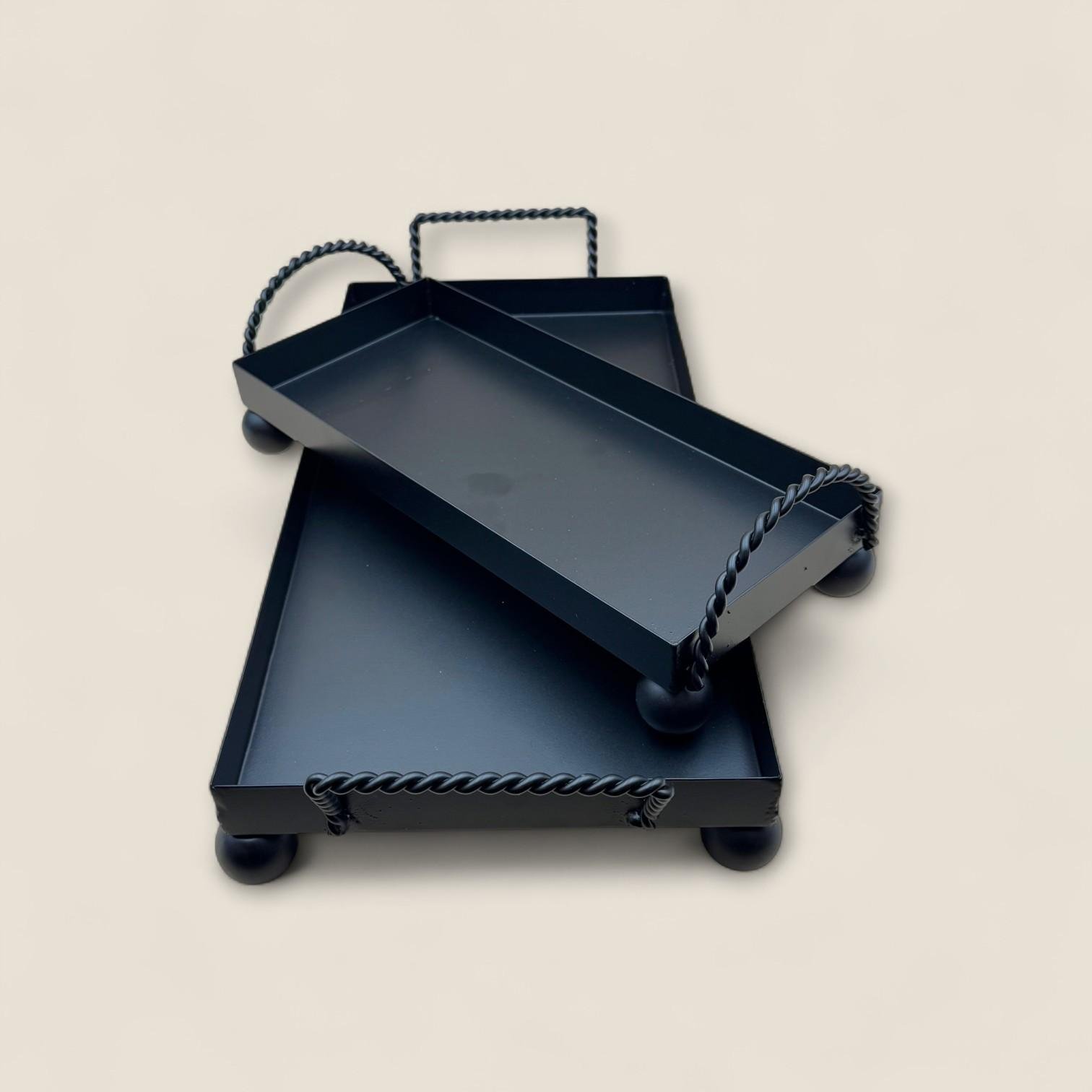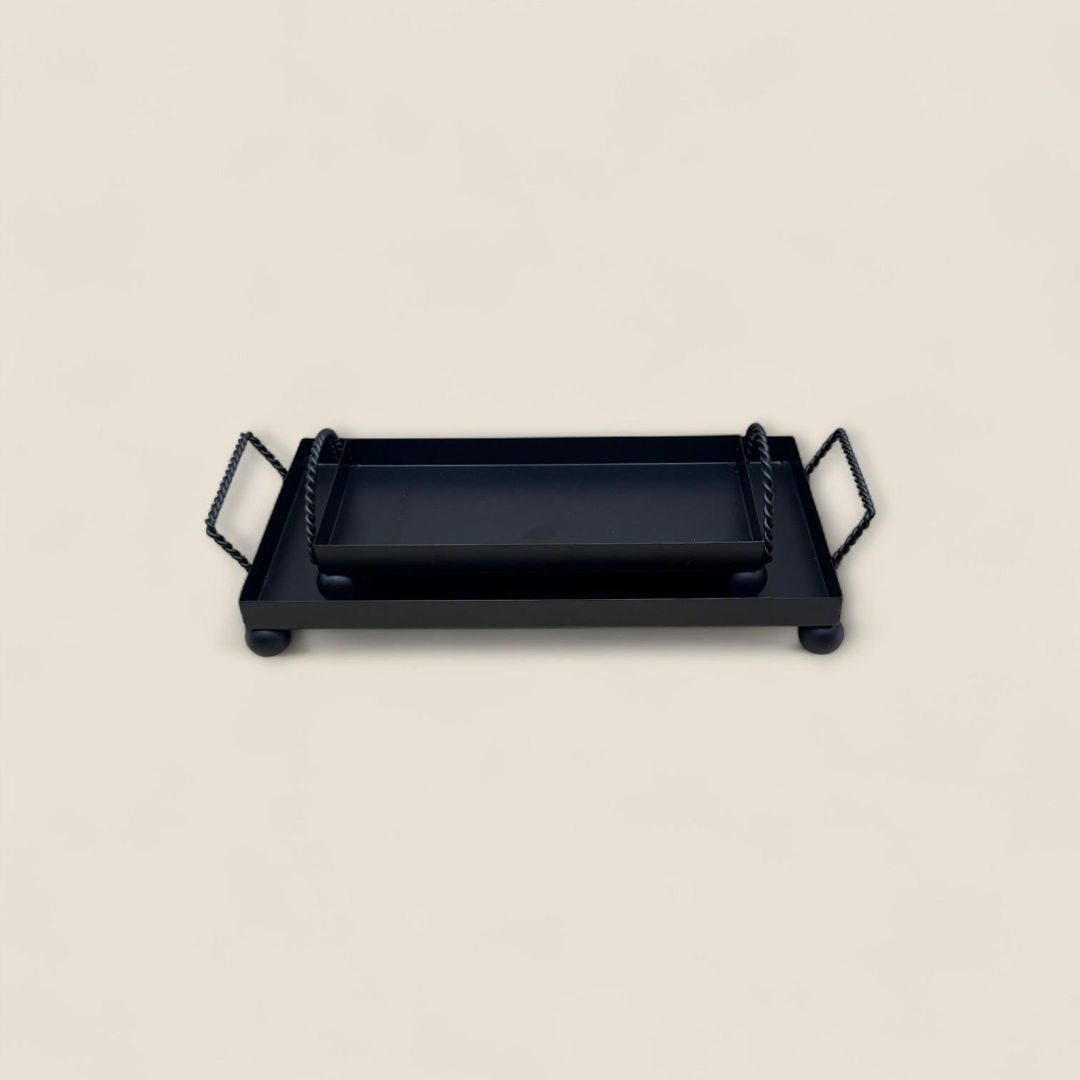 طقم صواني التقديم المستطيلة هو الخيار الأمثل للجمع بين الذوق العملي والجمال الراقي. مثالي لتقديم القهوة، الشاي، الحلويات أو المقبلات بكل أناقة، سواء في الاستخدام اليومي أو خلال تجمعات العائلة والمناسبات الخاصة. صواني مزودة بمقابض متينة لسهولة الحمل، وسطح مسطح يوفر استقرار تام أثناء التقديم.