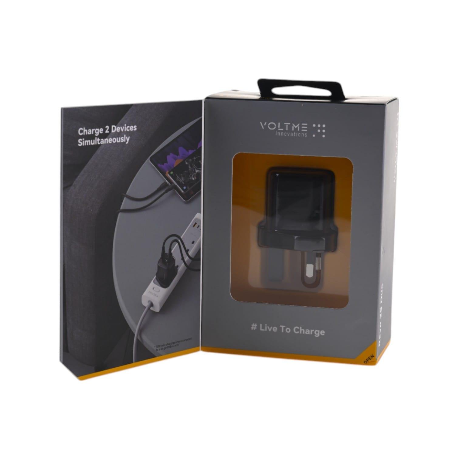 اشحن أجهزتك بسرعة وكفاءة باستخدام شاحن الحائط VoltME Revo 30 Duo CA (30 واط) باللون الأسود. بفضل الشحن السريع ثنائي المنفذ والتصميم الأنيق والمدمج ، فهو مثالي للاستخدام المنزلي أو المكتبي أو السفر.