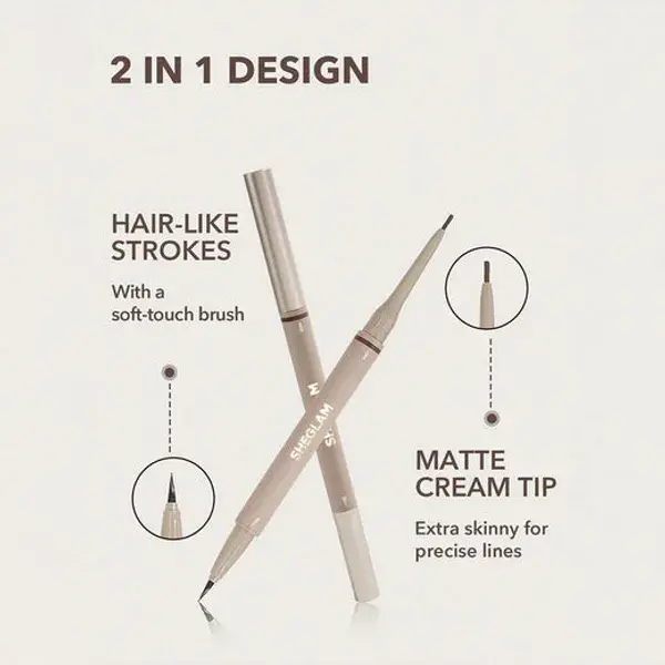 اكتشفي الأداة المثالية للحصول على حواجب محددة وجميلة مع قلم حواجب شيجلام 2 في 1 بلون تاوب. يتميز بتصميم مزدوج الأطراف يجمع بين طرف قلم دقيق من جهة وفرشاة لتصفيف الحواجب من الجهة الأخرى، مما يجعل تشكيل وملء وتصفيف الحواجب أكثر سهولة. يناسب لون التاوب عالميًا مختلف درجات البشرة والشعر، مما يوفر لمسة نهائية مصقولة تدوم طوال اليوم.