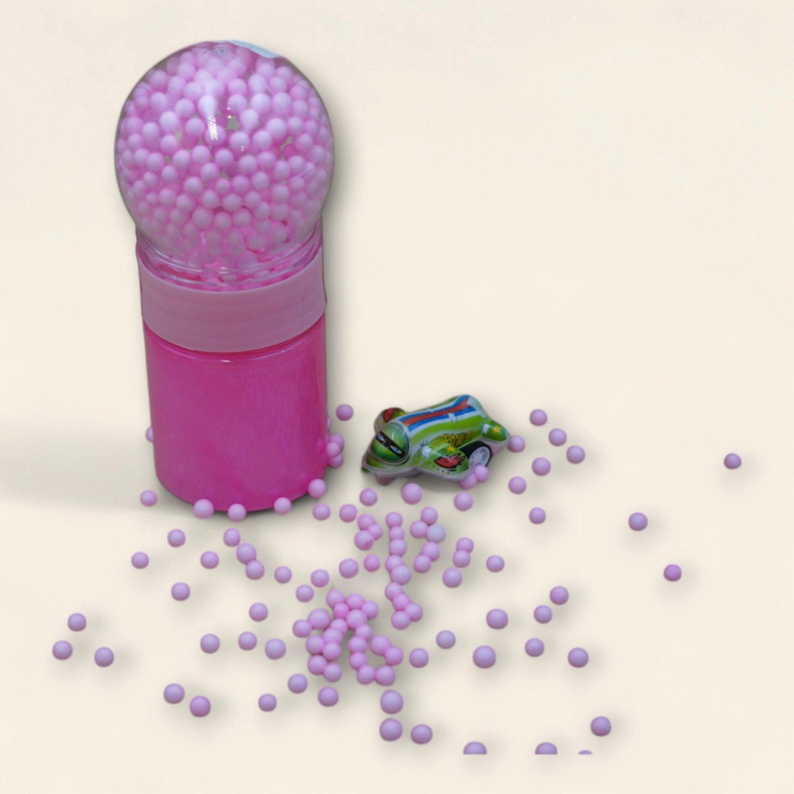 استعد لمفاجأة داخل كل كرة سلايم ممتع، خرزات عائمة، ولعبة طائرة صغيرة بانتظارك