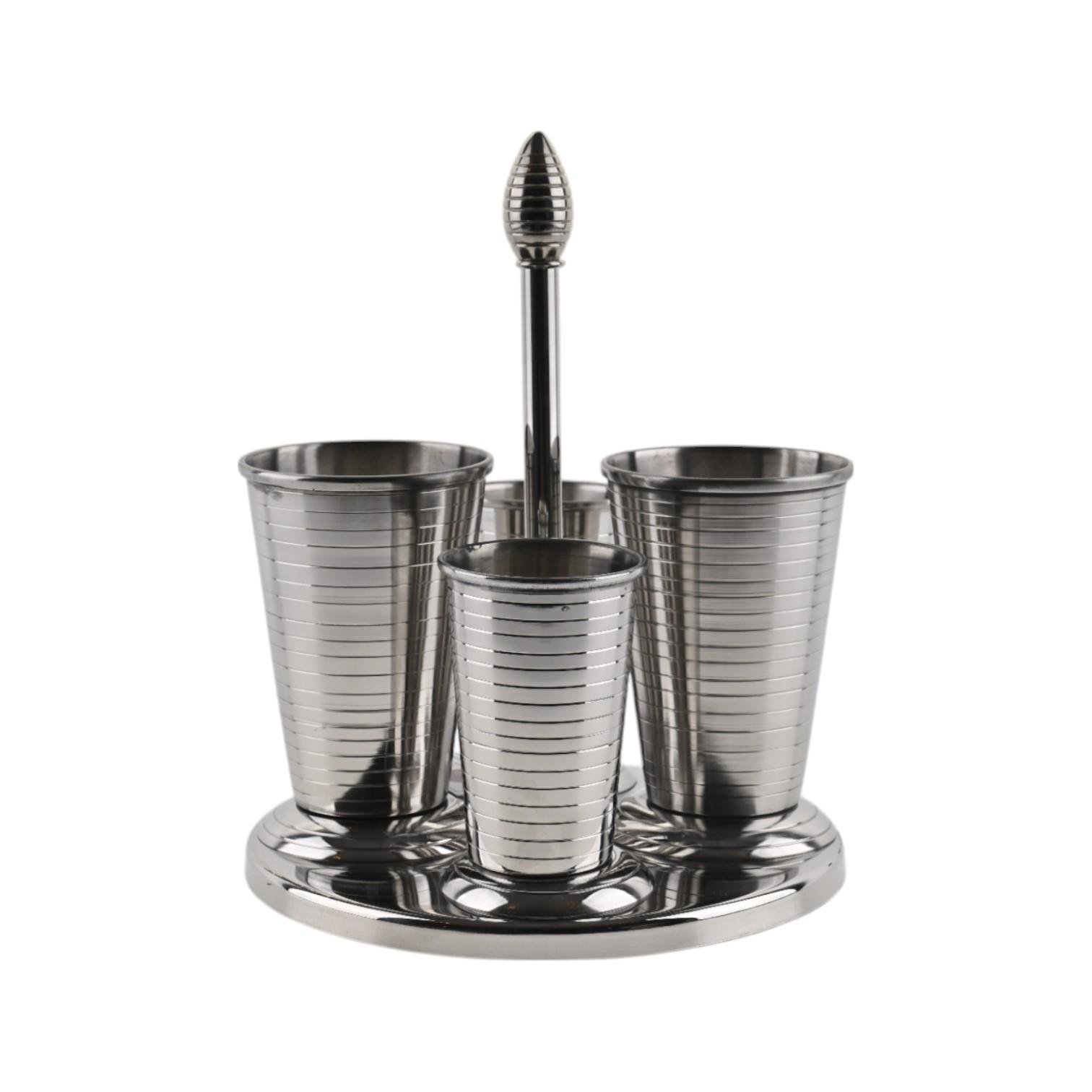 نظمي مطبخك مع حامل الأكواب من الستانليس ستيلالمقاوم للصدأ. يتميز هذا الحامل العصري بأربعة أكواب من الستانليس ستيل على قاعدة دائرية. تحتوي الحاويات على أخاديد أفقية لإضافة تفاصيل مميزة، ويضيف العمود الرأسي المركزي مع زخرفة في الأعلى لمسة من الأناقة إلى تصميمه العملي.