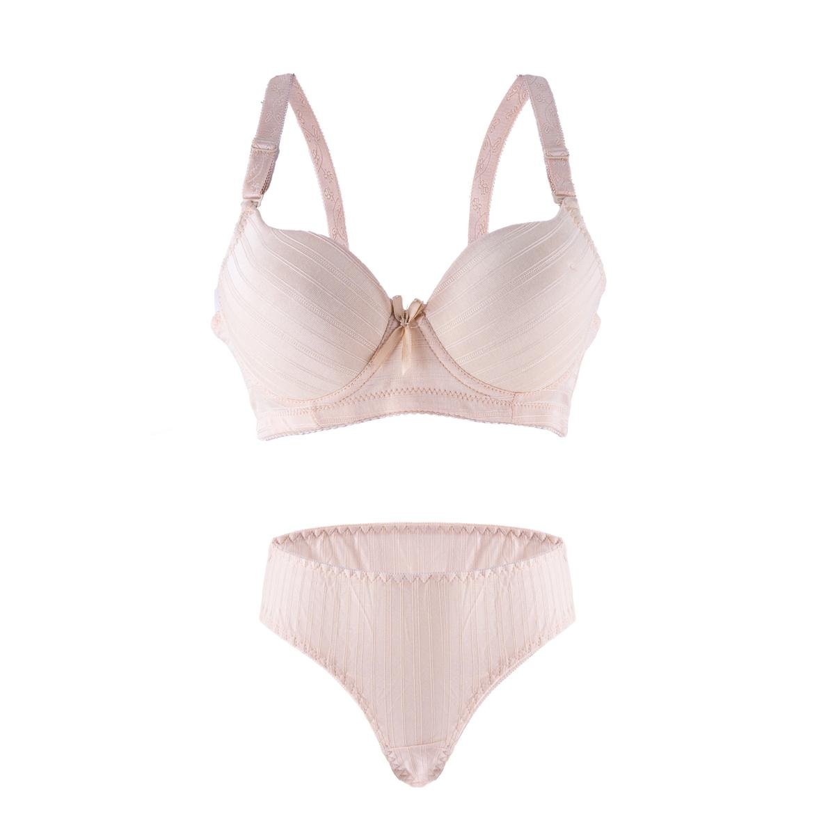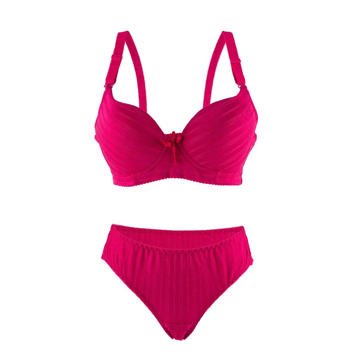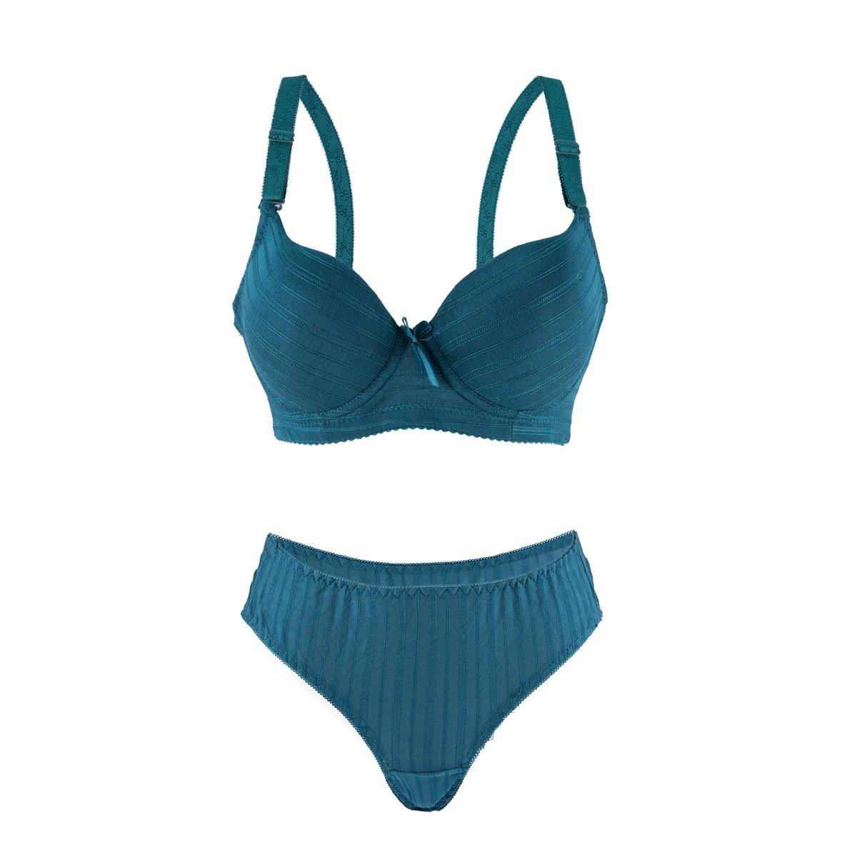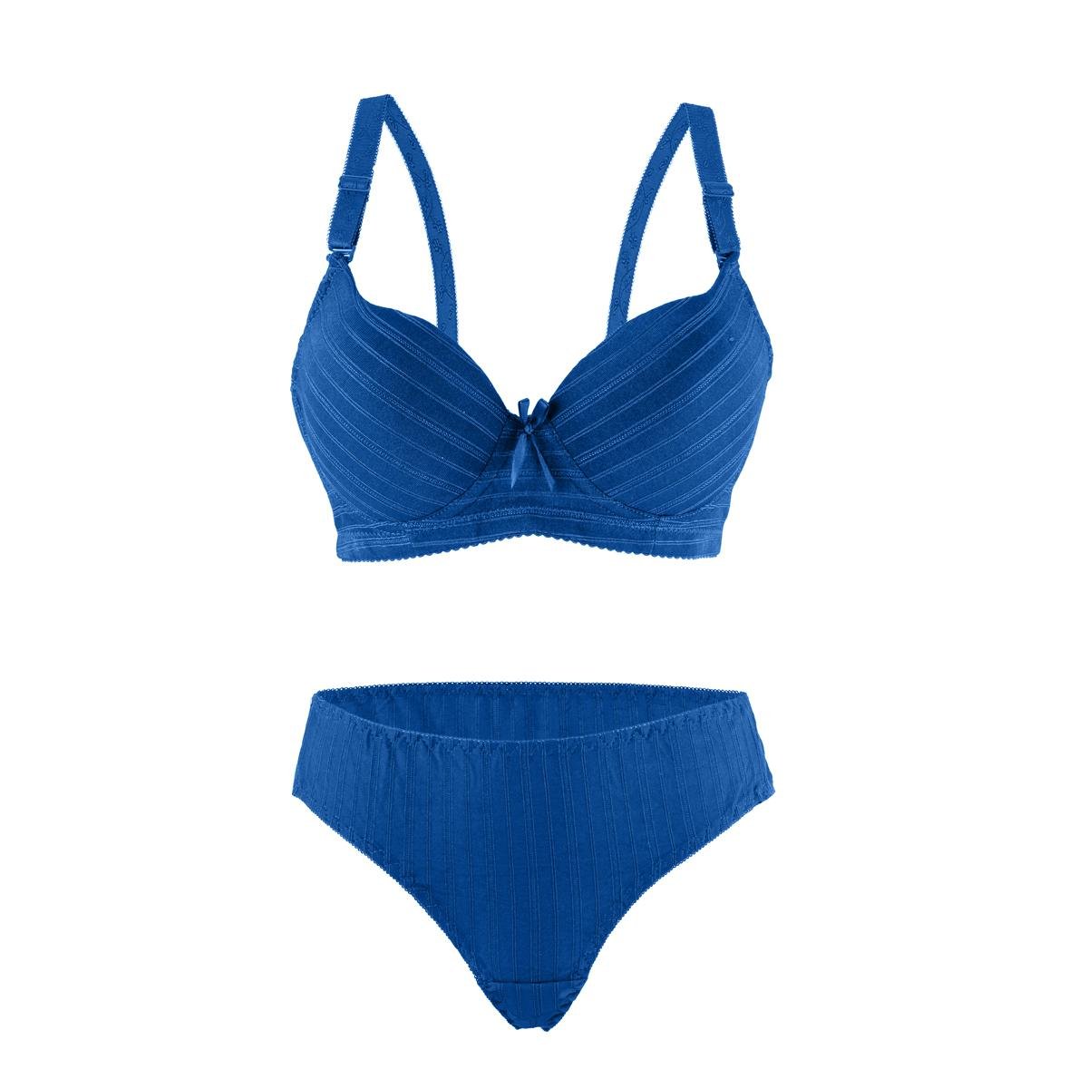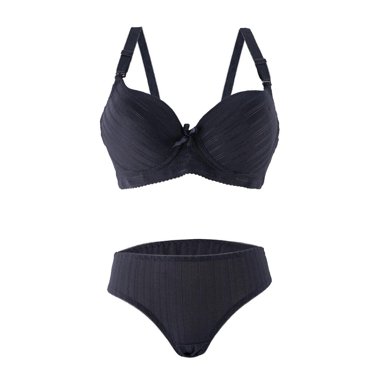 ابدئي يومك بإطلالة أنيقة وإحساس بالثقة مع طقم حمالة الصدر والكلسون المخطط والمبطن. يتميز التصميم بدعامة سفلية خفيفة ترفع وتحدد الشكل، بينما توفر الحشوة الناعمة راحة تدوم طوال اليوم. لمسات أنثوية مثل الربطة الصغيرة والنقشة المخططة تضيف سحرًا ناعمًا إلى القطعة.