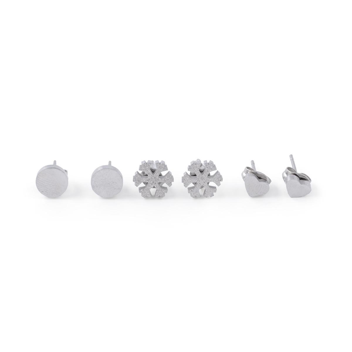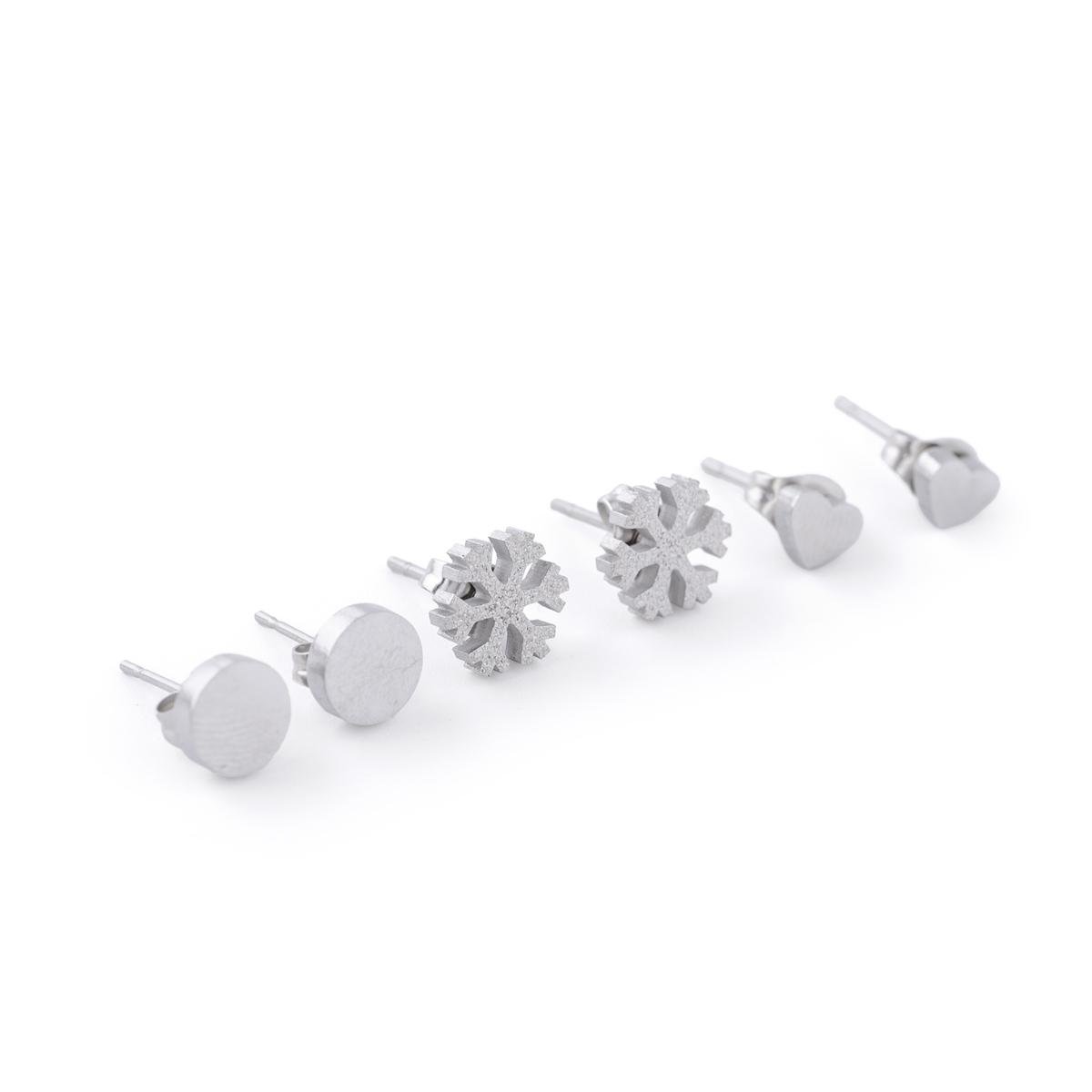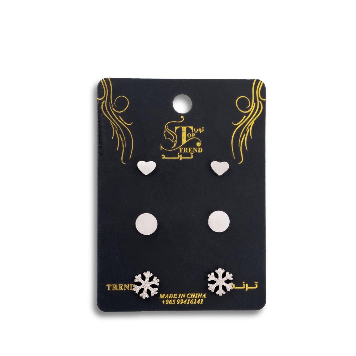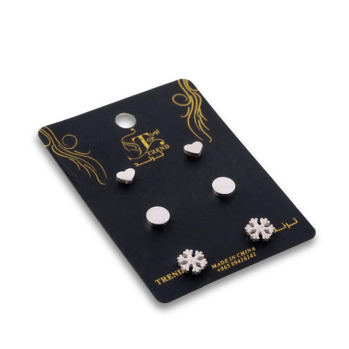 أضيفي لمسة من الأناقة والتألق لإطلالتك اليومية مع طقم أقراط بتصميم قلب دائري وندفة الثلج.