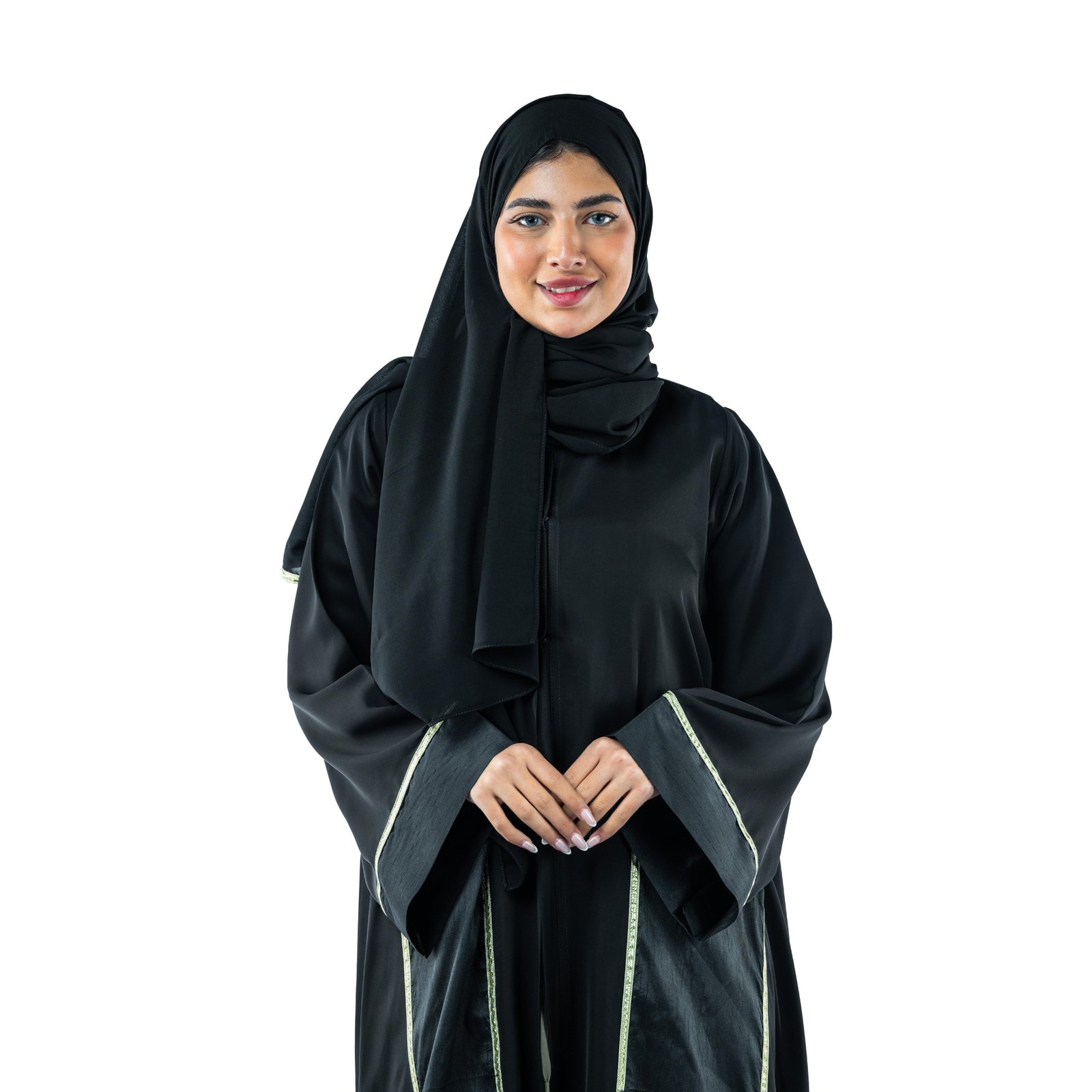 تميزي بإطلالة أنيقة مع هذه العباية المزينة بتفاصيل مخملية ولمسات معدنية، التي تجمع بين الأناقة والراحة. التصميم العالي الجودة مع الزخارف المعدنية يضفي لمسة فاخرة، بينما القصة الواسعة تضمن لكِ مظهراً ساحراً بكل سهولة. تأتي العباية مع حجاب متطابق، مما يجعلها خياراً مثالياً للمناسبات، السهرات، أو حتى لإطلالة يومية مميزة.