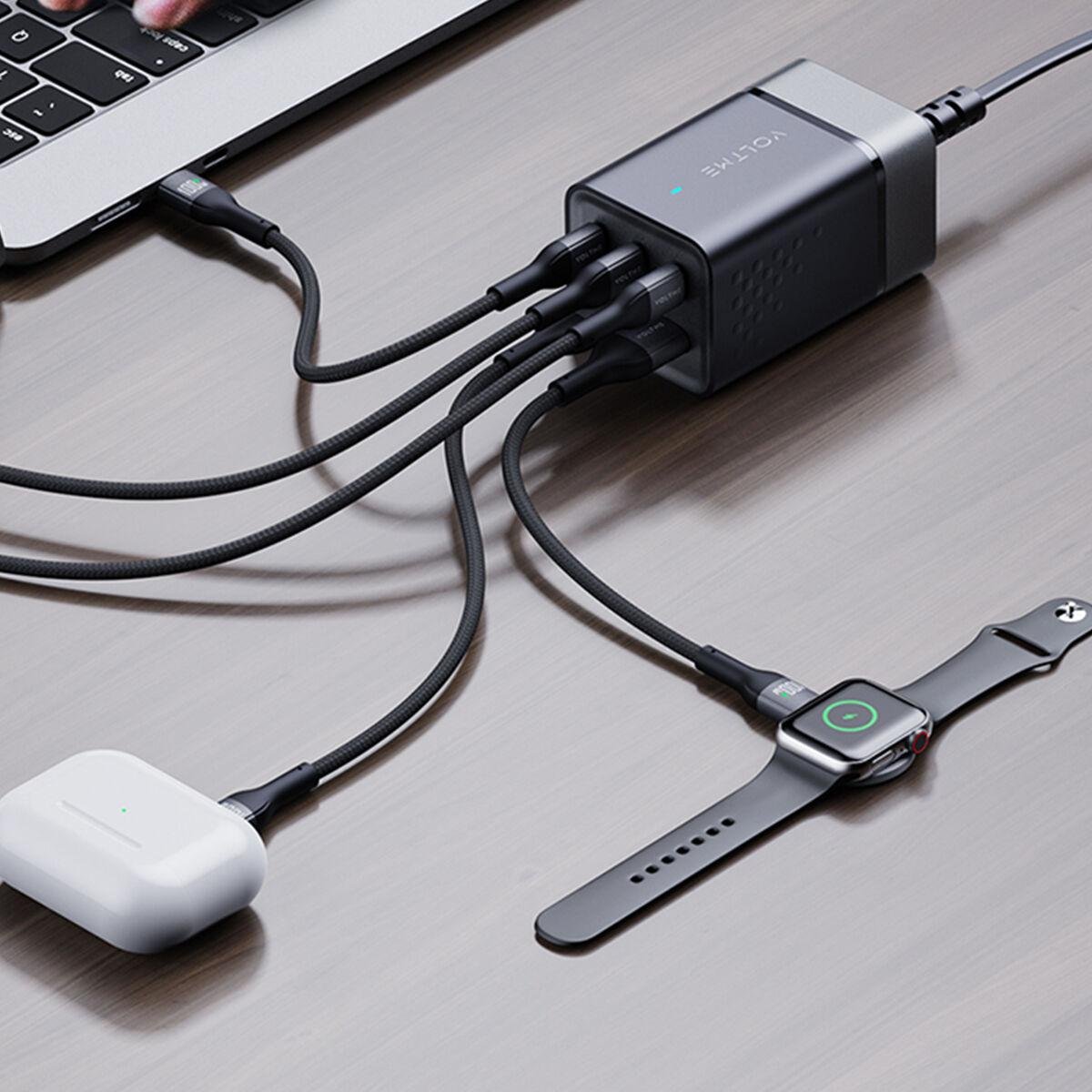 يمكن استخدامه لشحن ما يصل إلى 6 أجهزة في وقت واحد . يضمن الجمع بين الشحن AC و DC التوافق مع مجموعة واسعة من الأجهزة، بينما يوفر التصميم المدمج المساحة ويضيف الراحة