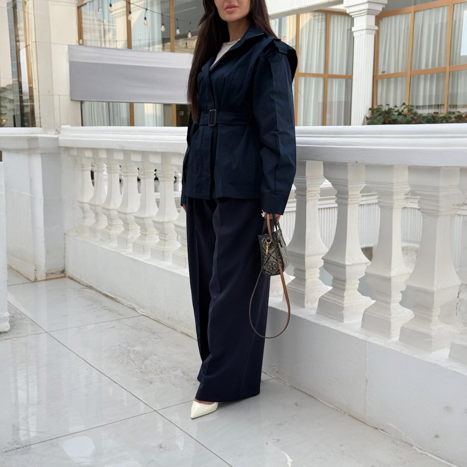 بليزر نسائي أنيق. يأتي بتصميم أمامي قابل للربط مع حزام يمكن فكه، وياقة ناعمة بخطوط نظيفة تضيف لمسة من الرقي. خامته ناعمة ومريحة وتُحافظ على شكلها الأنيق طوال اليوم. يمكن تنسيقه مع بنطال رسمي لإطلالة كاملة، أو ارتداؤه فوق الجينز لمظهر أنيق غير رسمي.