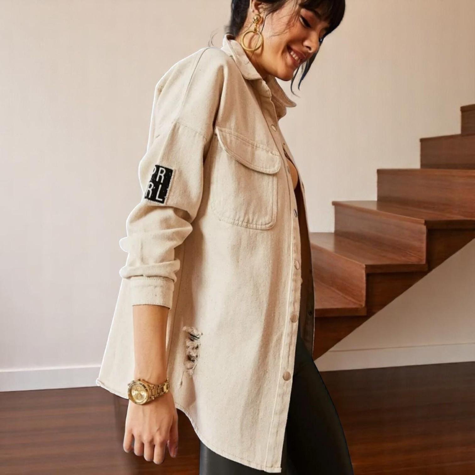 امنحي إطلالتك لمسة من الجرأة والأناقة مع جاكيت جينز نسائي مقطع ومريح مظهر كلاسيكي انيق الخيار المثالي لمحبات الأسلوب المميز. يتميز هذا الجاكيت بقصّة فضفاضة توفر الراحة، وتصميم ممزق يزيد من جاذبيته، مع خامة الجينز الفاخرة التي تضمن المتانة والمرونة. سواء كنتِ ترتدينه فوق تيشيرت كاجوال أو تنسّقينه لإطلالة جريئة، فإن هذه القطعة تضيف لمسة فريدة إلى خزانتك.