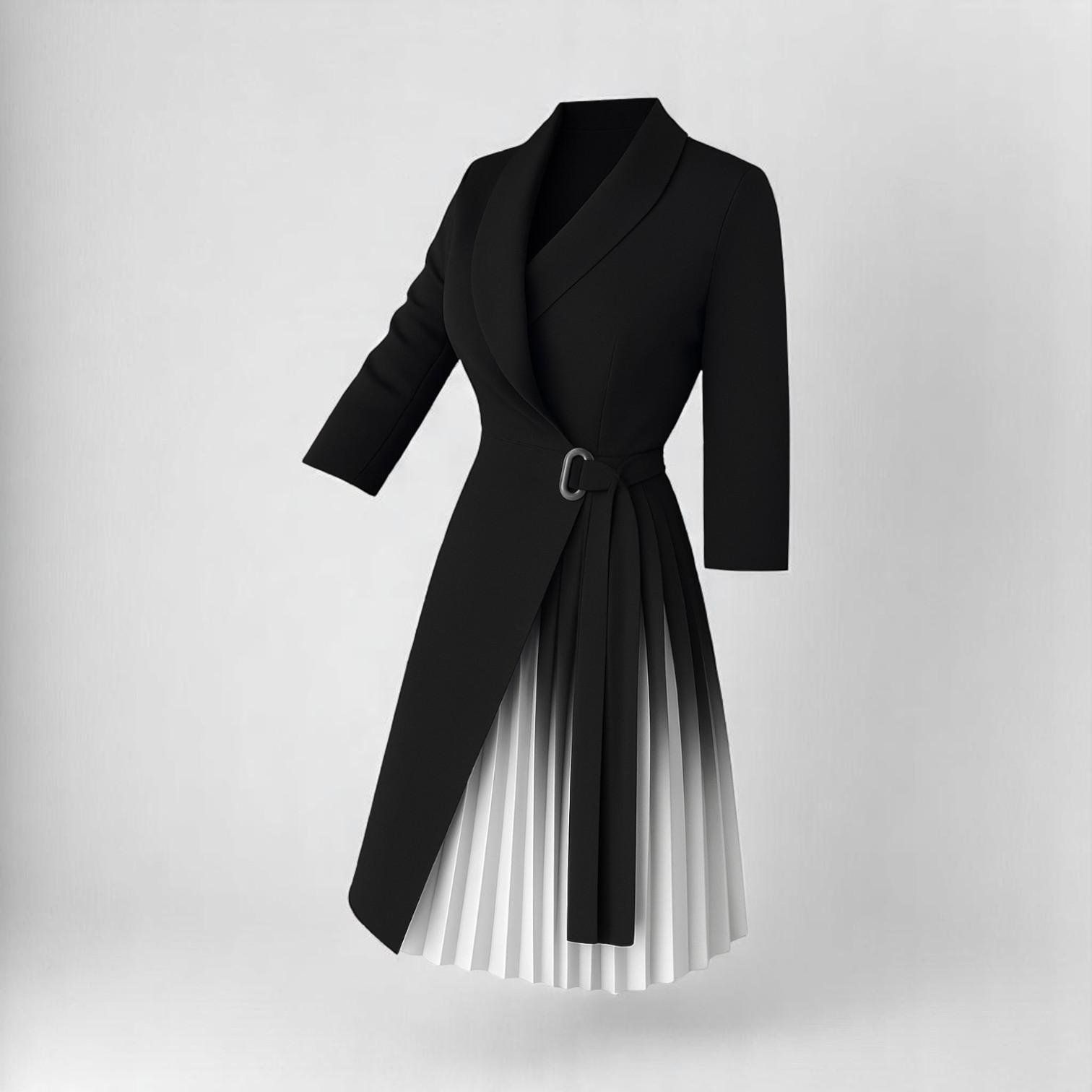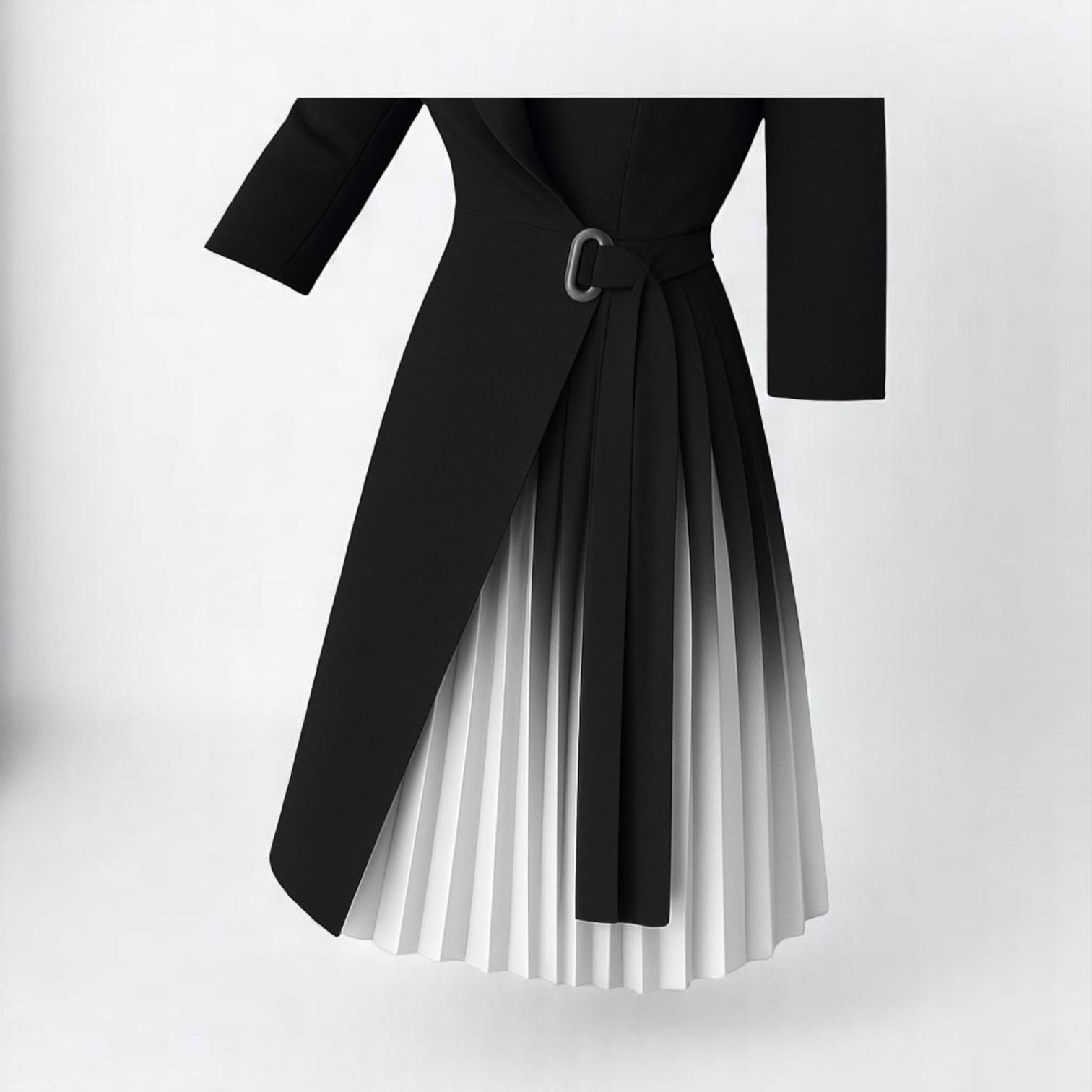 يتميز الفستان بتنورة مع كسرات بتدرج لوني ساحر ينساب مع كل حركة. الجزء العلوي بتصميم لف يبرز القوام بأنوثة، أما التدرج اللوني فيضفي لمسة عصرية وناعمة. مثالي للمناسبات الراقية، العزائم، أو الخروجات النهارية المميزة.