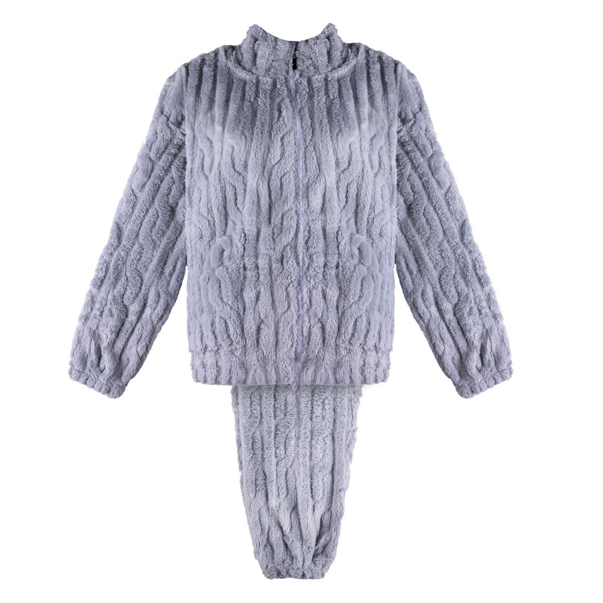 طقم بيجاما فروي مموج بسحاب